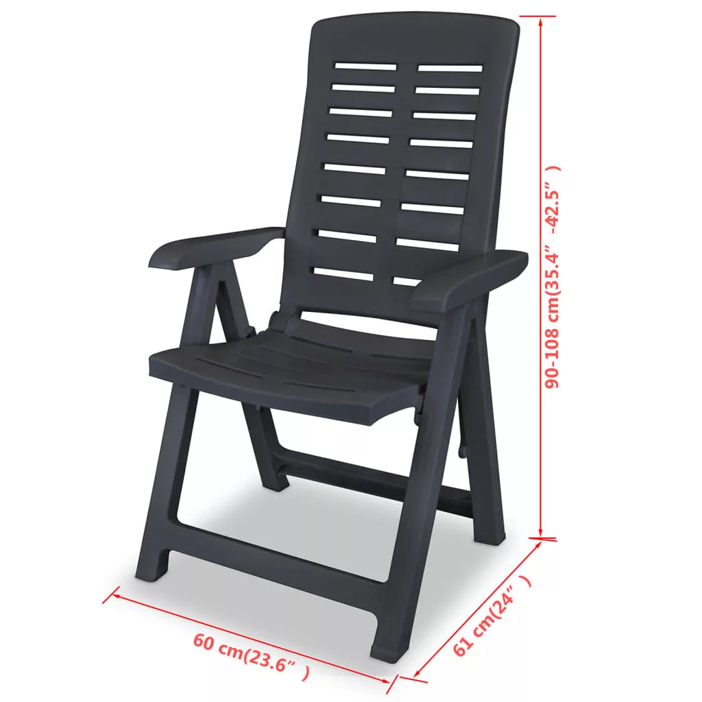 Az összecsukható székek strapabíró műanyagból készültek, így ellenállnak az időjárás viszontagságainak és könnyen tisztíthatóak. A háttámlájuk 4 különböző pozícióban rögzíthető annak érdekében, hogy a székek mindig a legkényelmesebb pihenési lehetőséget biztosítsák. Kis súlyuk miatt könnyen mozgathatóak és a könnyebb tárolás érdekében összecsukhatóak.
