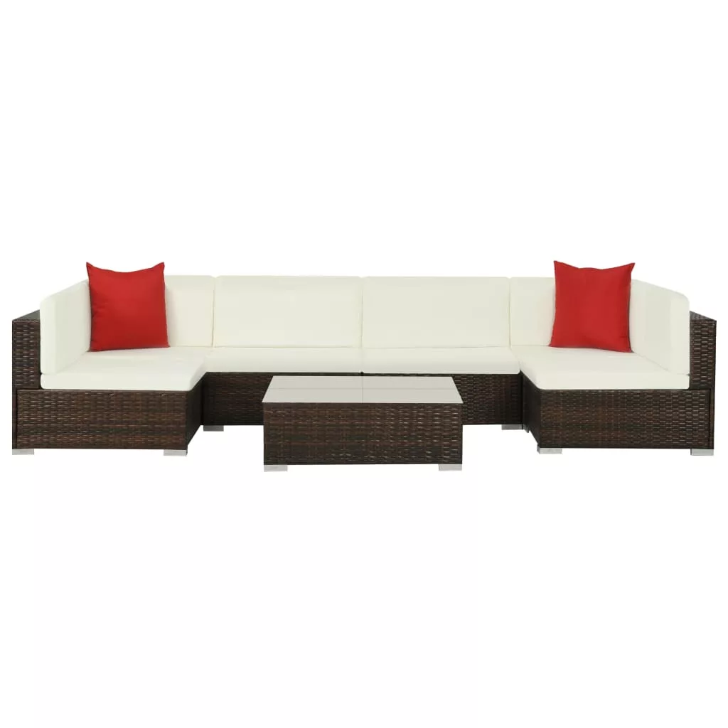 Ez a polyrattan ülőgarnitúra - amelybe 2 sarokkanapé, 4 középső kanapé, 1 dohányzóasztal, 8 hátpárna, 6 ülőpárna és 2 látványos megjelenésű, piros díszpárna tartozik - kertjében vagy verandáján stílusos ülőhelyet biztosít.