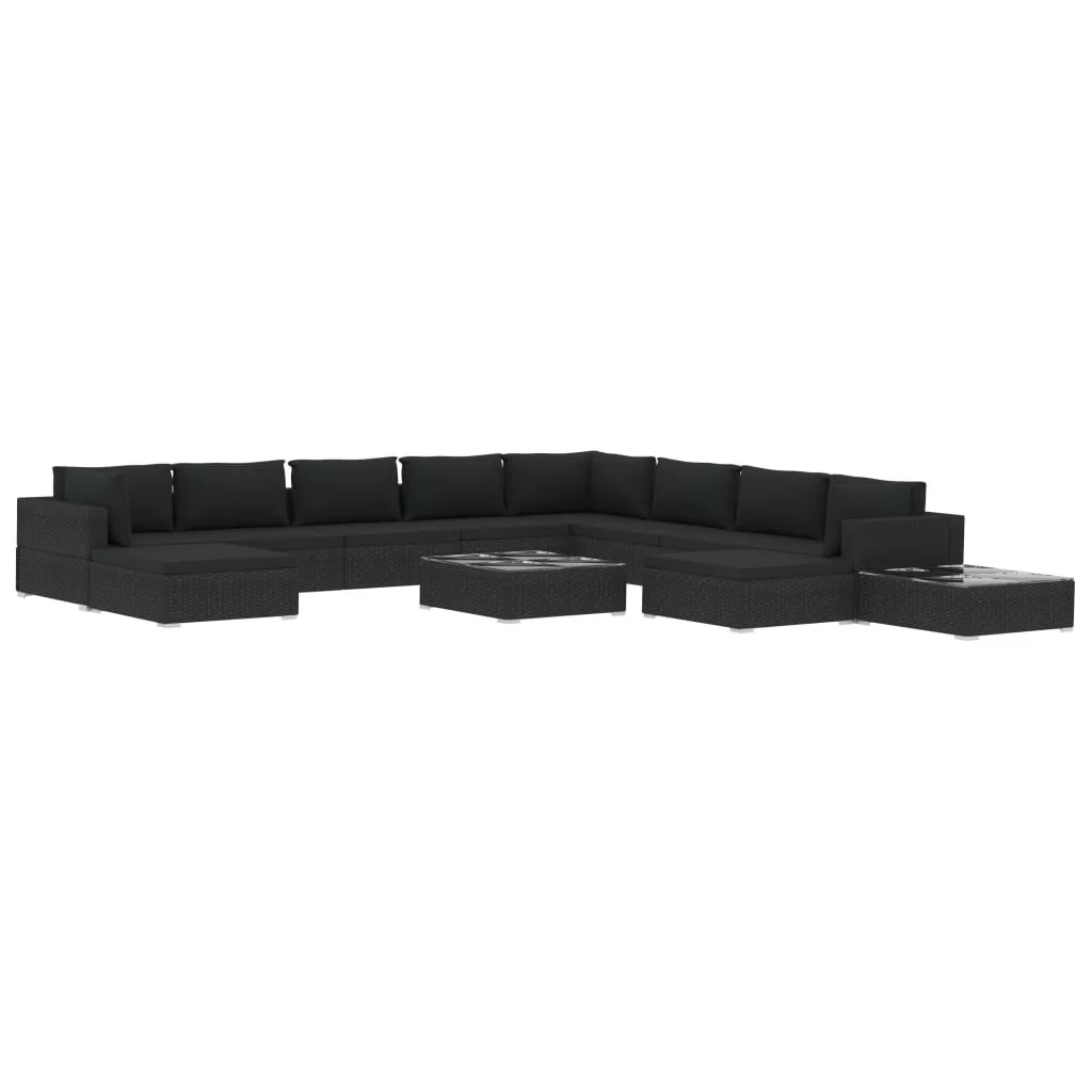 A szett 3 sarokkanapét, 5 középső kanapét, 2 lábzsámolyt, 2 dohányzóasztalt, 10 ülőpárnát és 11 hátpárnát tartalmaz. Megjegyzés: A szett minőségének megőrzése érdekében javasoljuk, hogy eső, hó vagy fagy esetén takarja le.