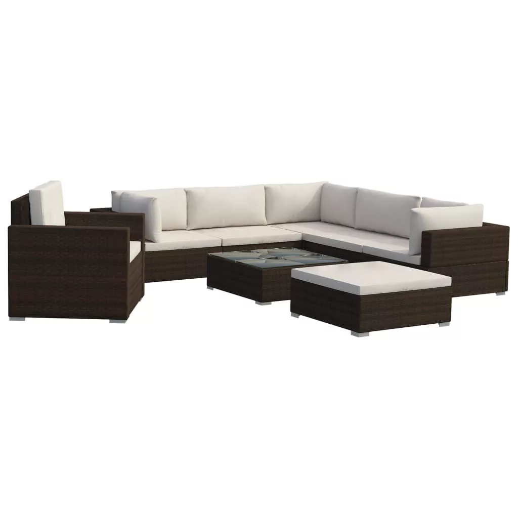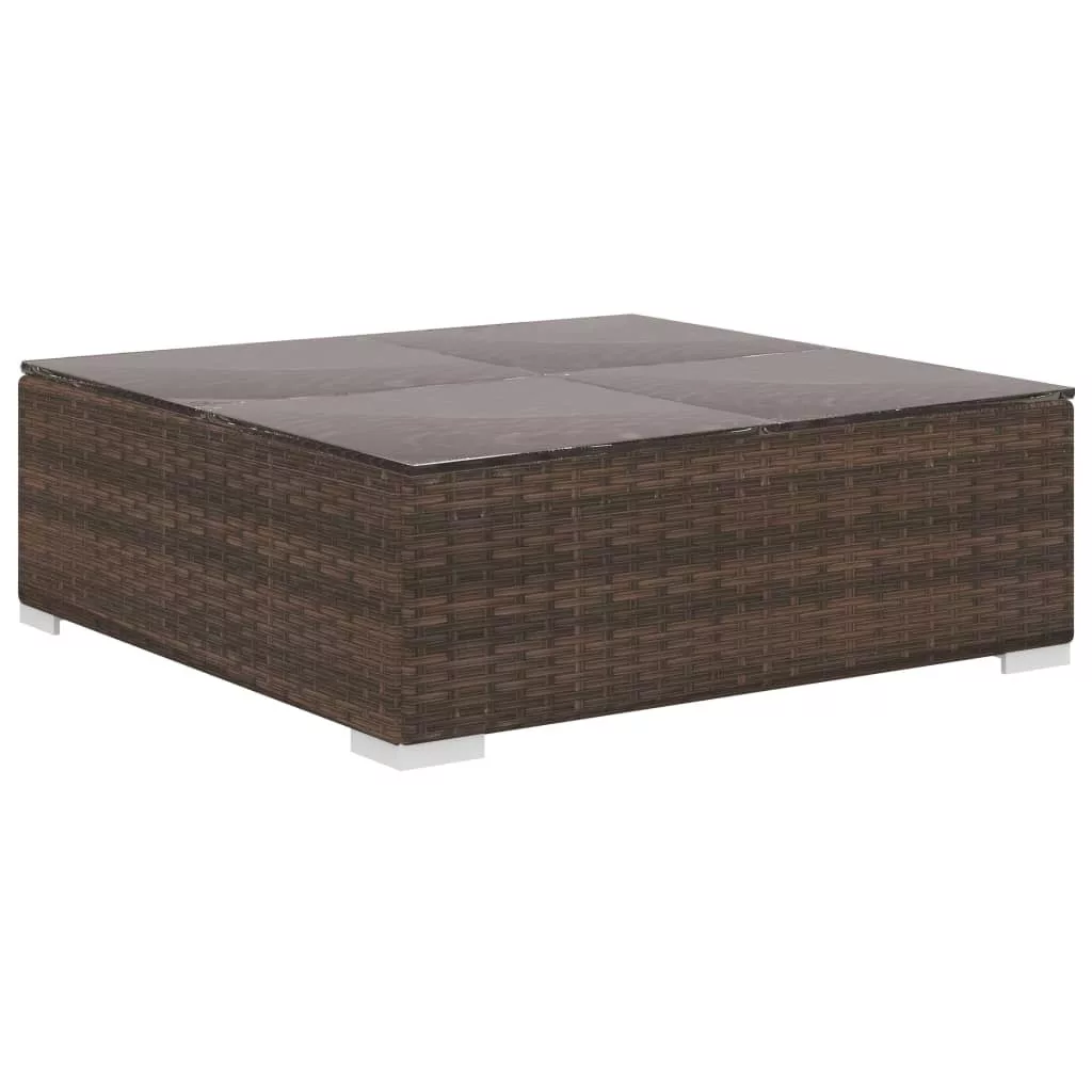 A szett 3 sarokkanapét, 2 középső kanapét, 1 lábzsámolyt, 1 fotelt, 1 dohányzóasztalt, 7 ülőpárnát és 9 hátpárnát tartalmaz. Megjegyzés: A szett minőségének megőrzése érdekében javasoljuk, hogy eső, hó vagy fagy esetén takarja le.