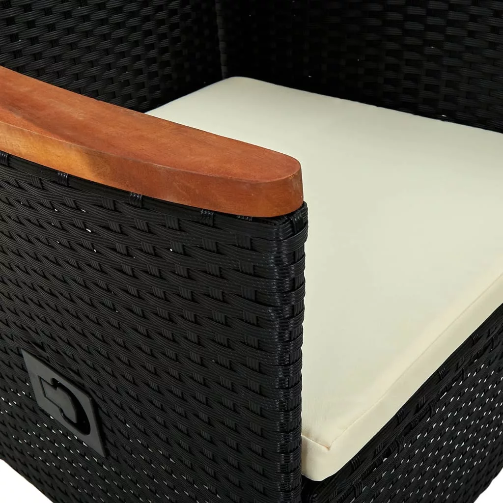 - Anyaga: PE rattan + tömör akácfa karfa + porszórt bevonatú acélváz
