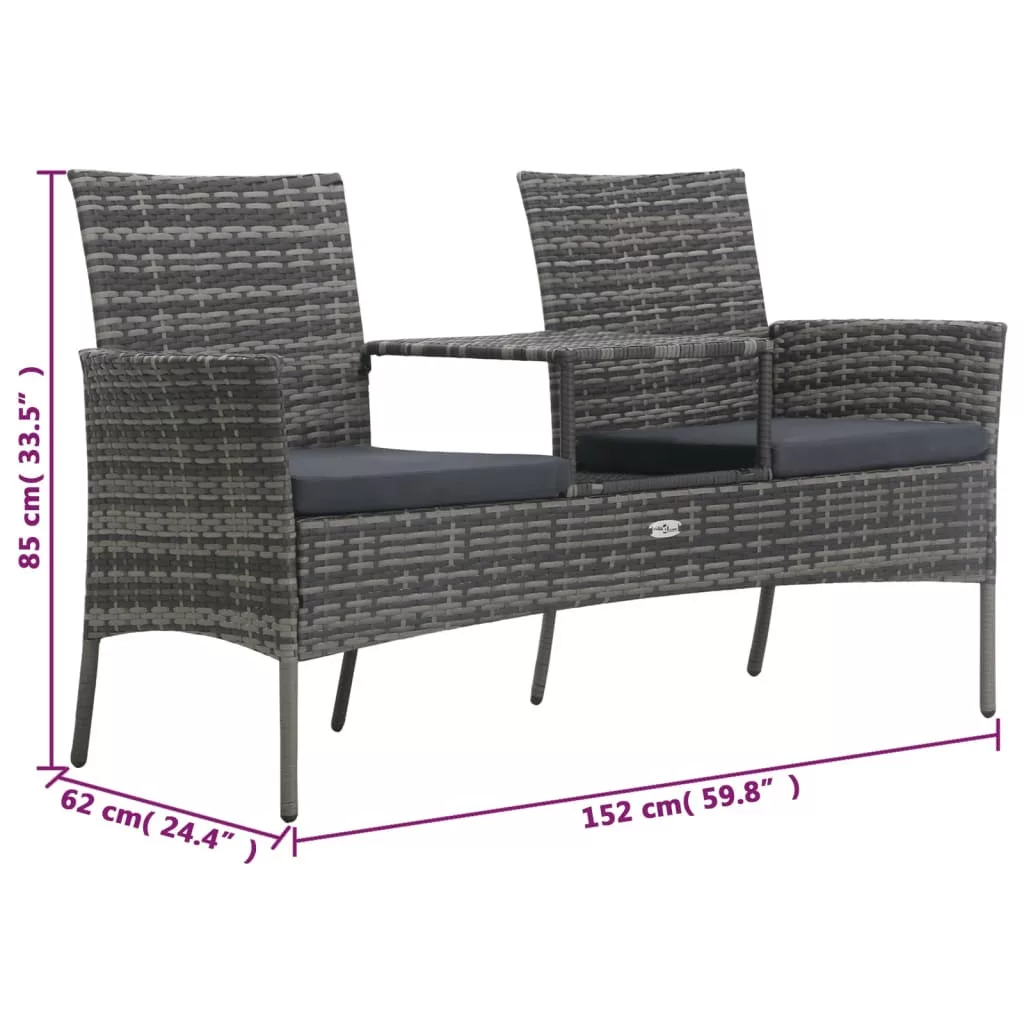 Az időjárásálló és vízálló PE rattannak köszönhetően a padszett könnyen tisztítható, strapabíró és mindennapi használatra alkalmas. A pad erős, porszórt acélvázzal rendelkezik. Ezenkívül könnyű, így könnyen mozgatható. A két ülőfelületet egy teázóasztal köti össze, melyen kényelmesen, kézközelben tarthatja italait vagy kedvenc könyveit.