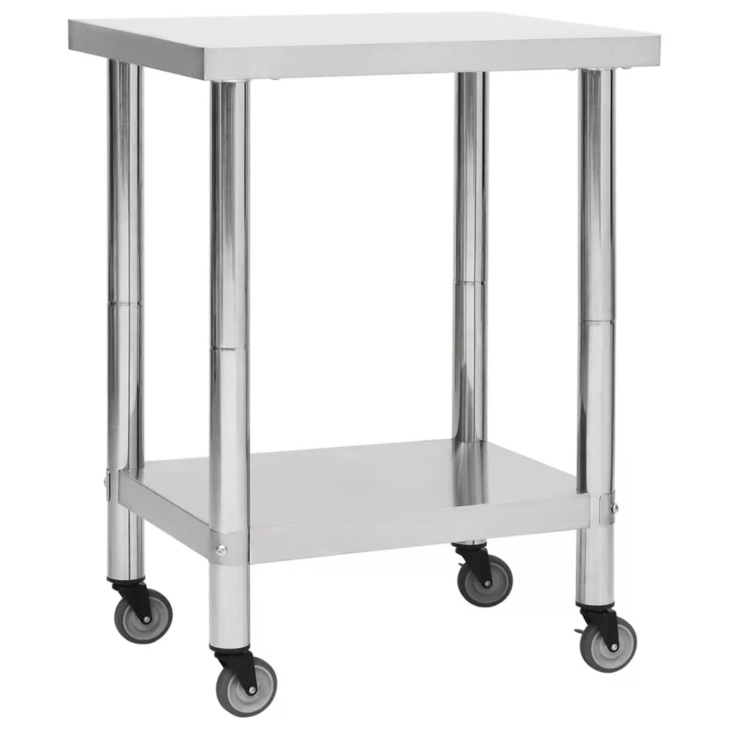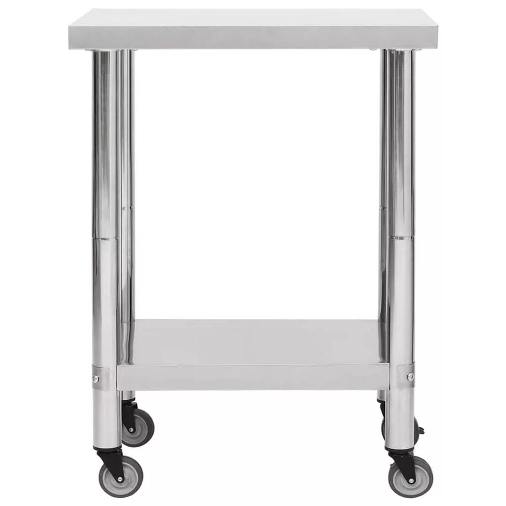 Ez a vendéglátásban használatos munkaasztal rozsdamentes acélból készült, így strapabíró. A sima felület korrózióálló és könnyen tisztítható. Az alsó lap extra tárolóhelyet biztosít. A munkapad 4 mozgatható kerékkel rendelkezik, így szabadon mozgathatja. 2 kereke fékkel lett ellátva, hogy az asztal a helyén maradjon.