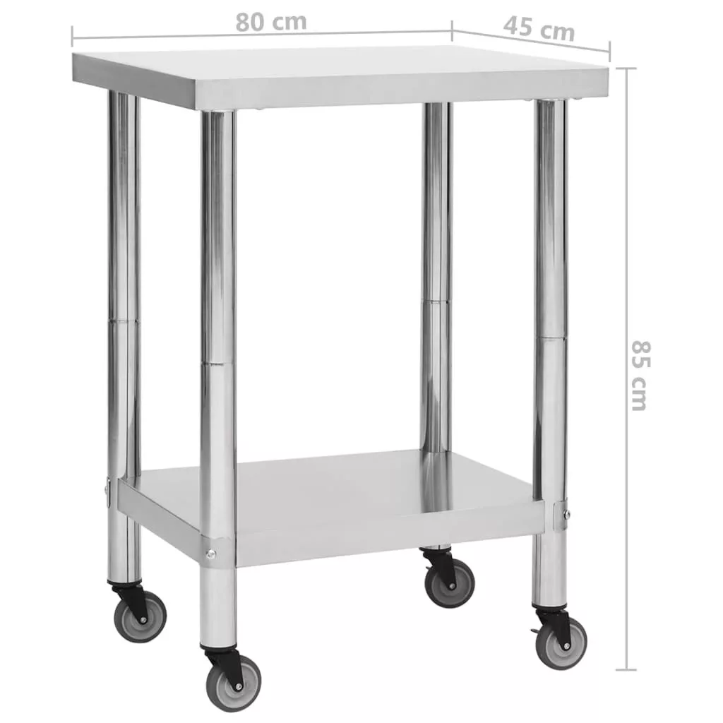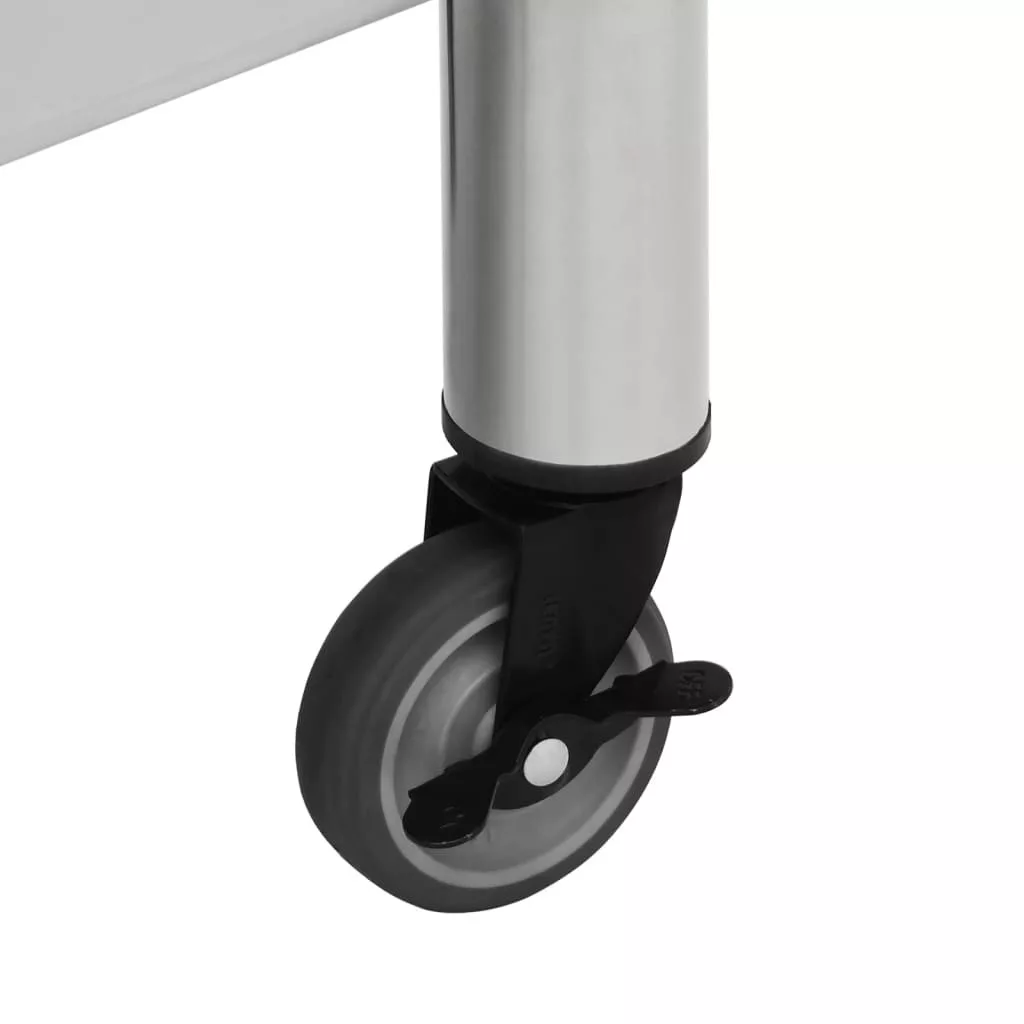 Ez a vendéglátásban használatos munkaasztal rozsdamentes acélból készült, így strapabíró. A sima felület korrózióálló és könnyen tisztítható. Az alsó lap extra tárolóhelyet biztosít. A munkapad 4 mozgatható kerékkel rendelkezik, így szabadon mozgathatja. 2 kereke fékkel lett ellátva, hogy az asztal a helyén maradjon.