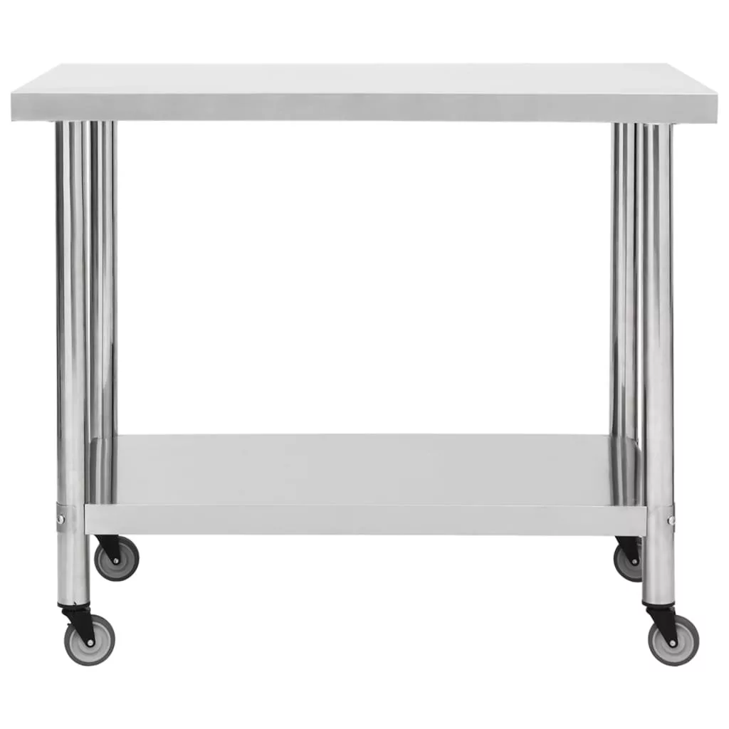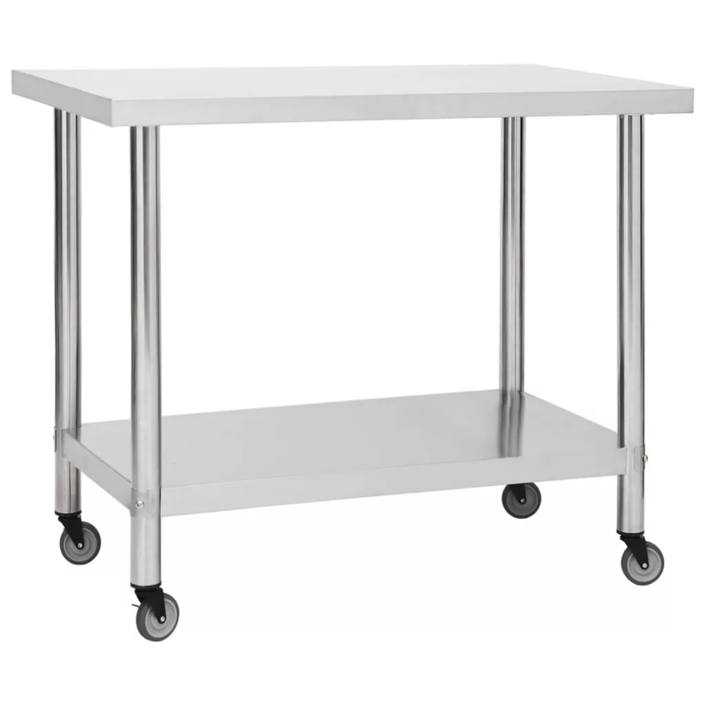 Ez a vendéglátásban használatos munkaasztal rozsdamentes acélból készült, így strapabíró. A sima felület korrózióálló és könnyen tisztítható. Az alsó lap extra tárolóhelyet biztosít. A munkapad 4 mozgatható kerékkel rendelkezik, így szabadon mozgathatja. 2 kereke fékkel lett ellátva, hogy az asztal a helyén maradjon.
