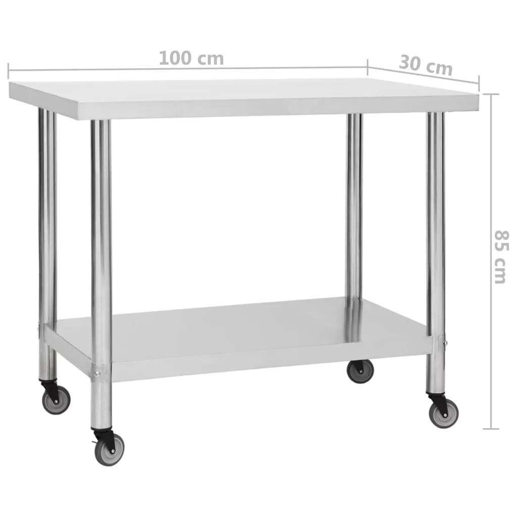 Ez a vendéglátásban használatos munkaasztal rozsdamentes acélból készült, így strapabíró. A sima felület korrózióálló és könnyen tisztítható. Az alsó lap extra tárolóhelyet biztosít. A munkapad 4 mozgatható kerékkel rendelkezik, így szabadon mozgathatja. 2 kereke fékkel lett ellátva, hogy az asztal a helyén maradjon.