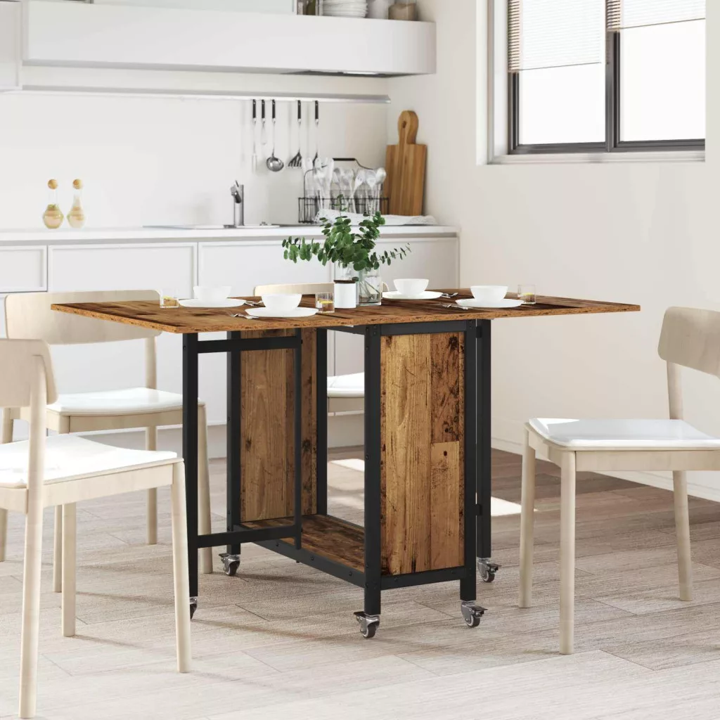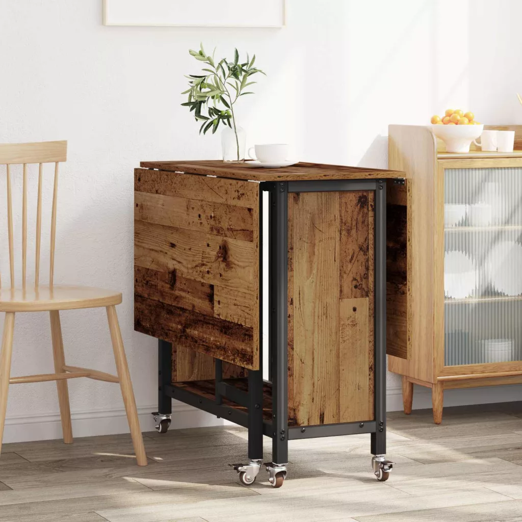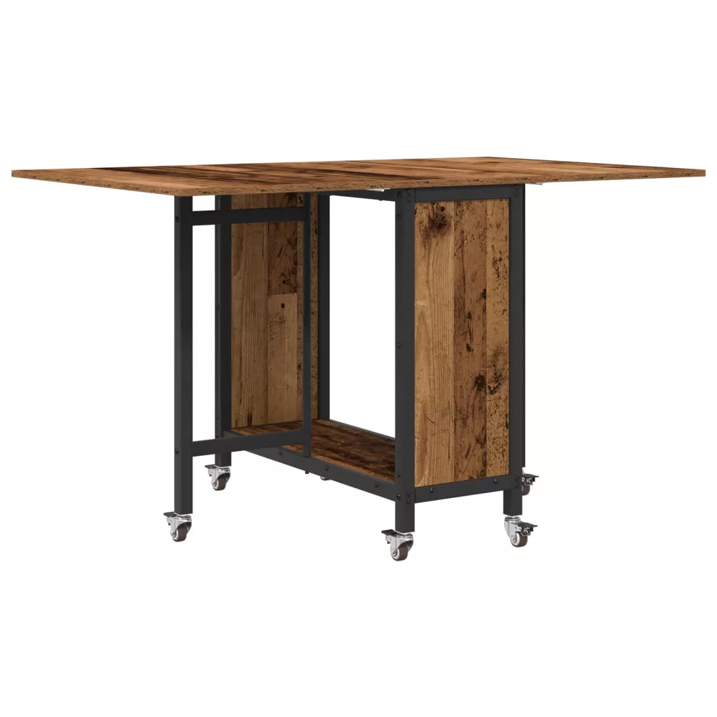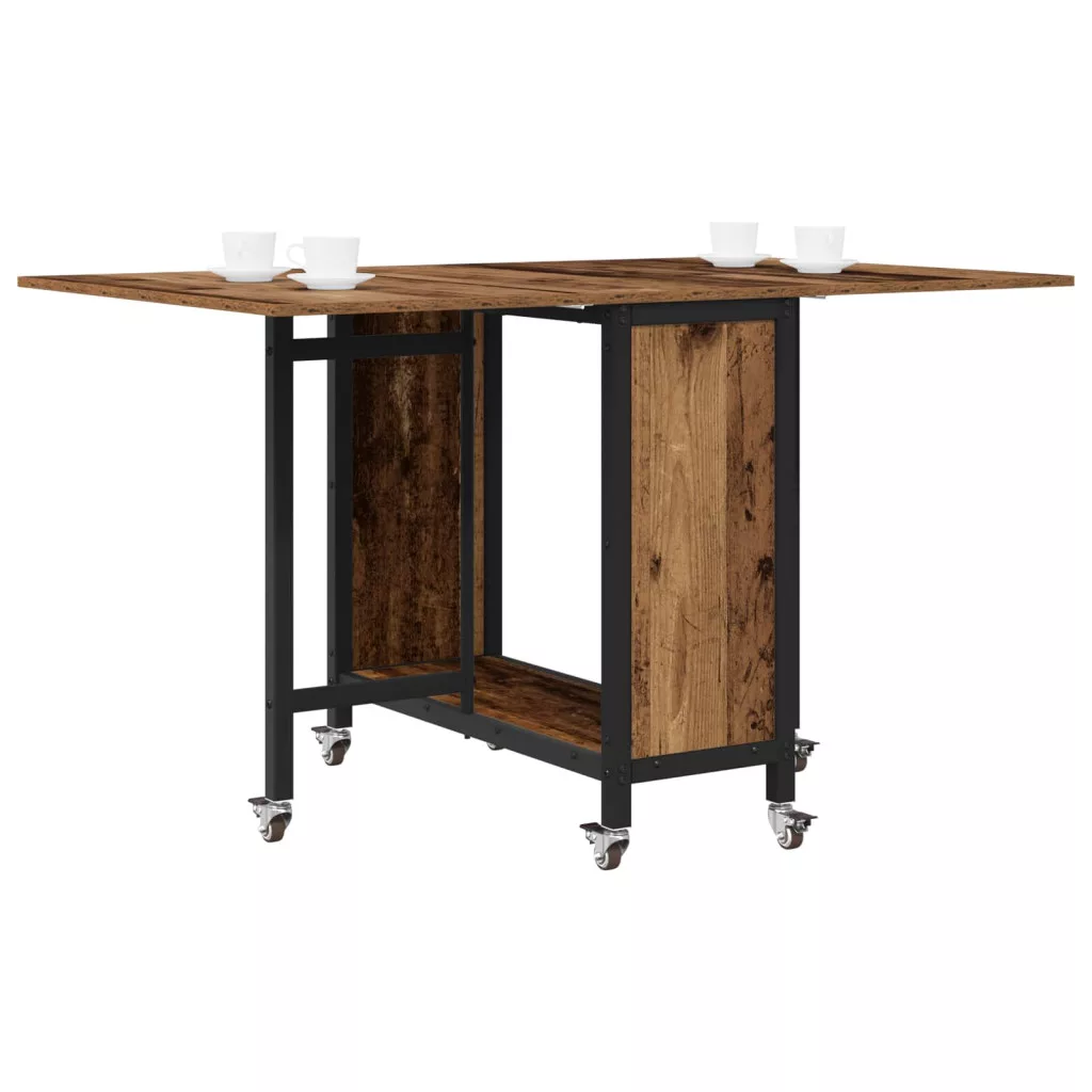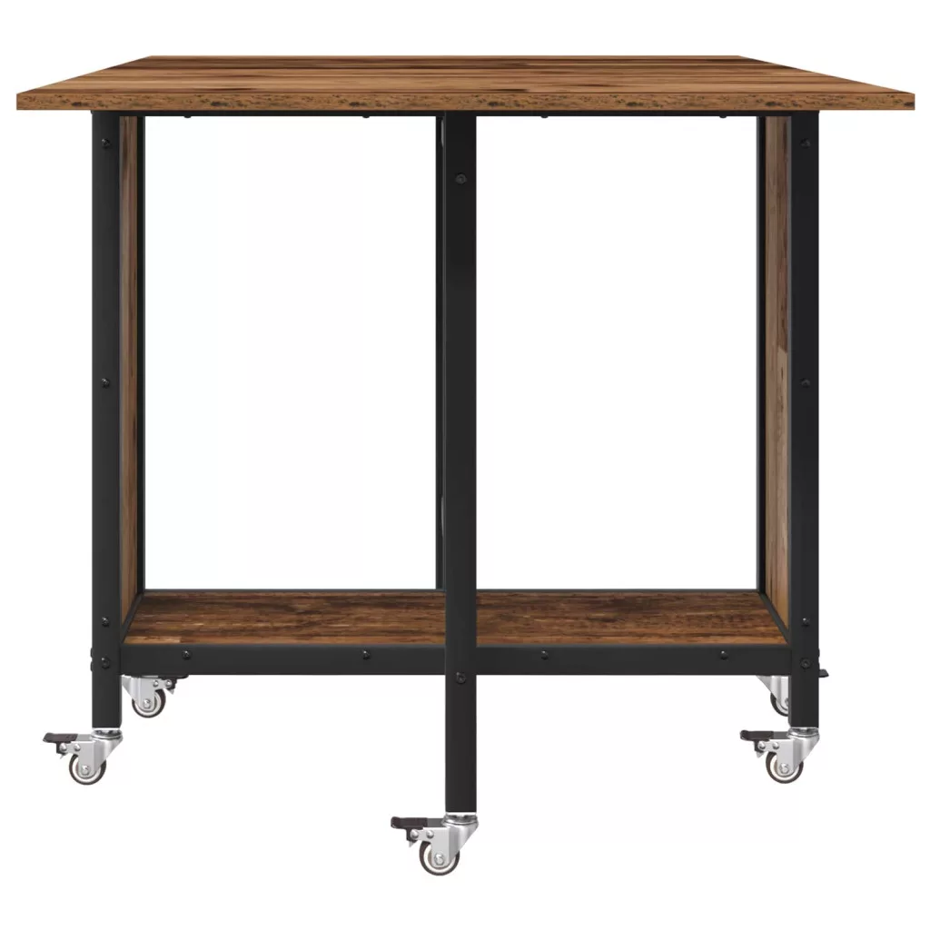 Ez az asztal sima fa felülettel és hatszárnyú, zárható kerekekkel készült. A kétoldalon összecsukható dizájn segít megtakarítani a helyet, míg az alsó polc tárolási lehetőséget kínál. Oszd meg az étkezéseket a családoddal vagy barátaiddal ezzel a klassz fa étkezőasztallal!