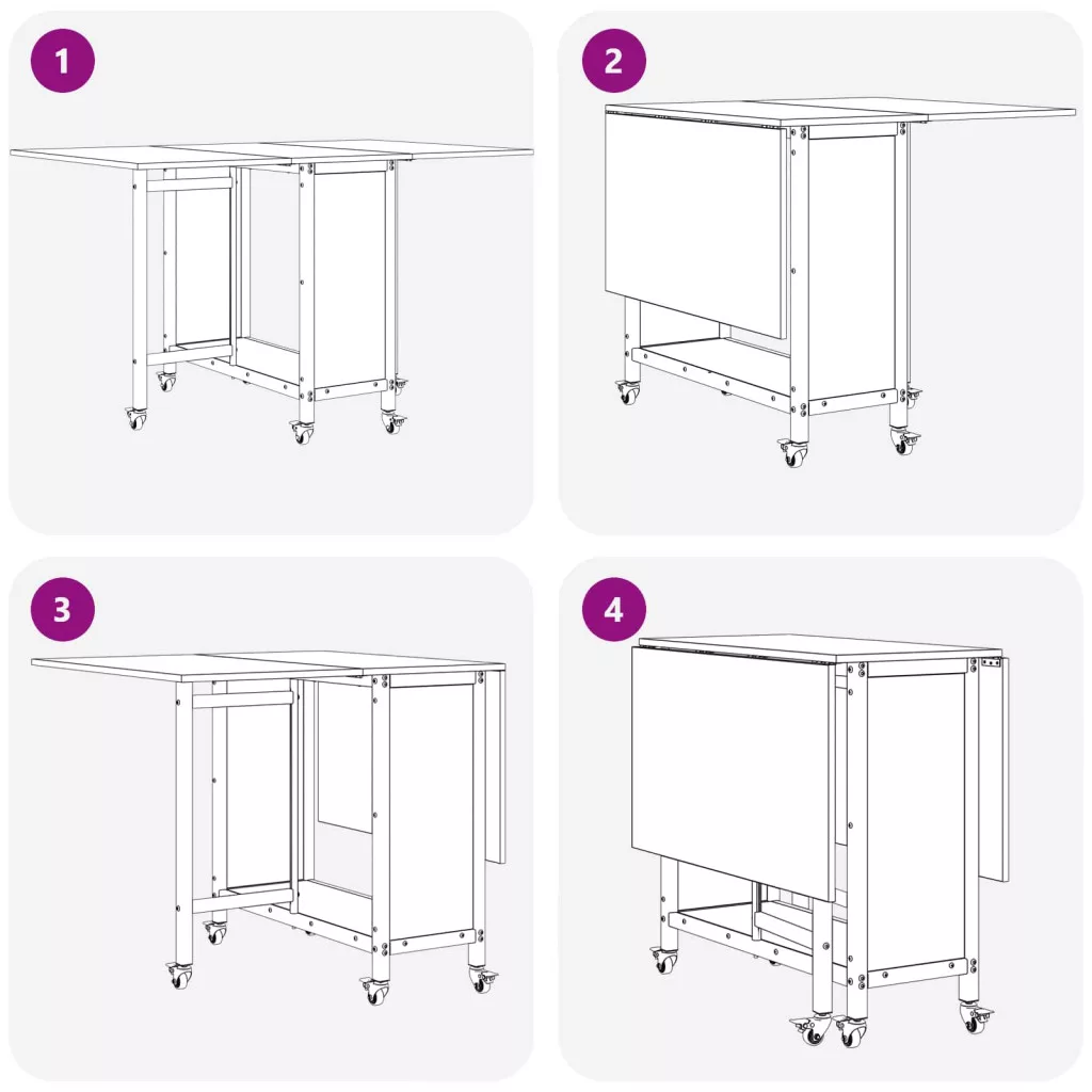 • Rugalmas összecsukható dizájn: Az asztallap mindkét oldala összecsukható, így könnyen beilleszthető különböző helyszínekbe – legyen az étkező, konyha vagy dolgozószoba. Ez a megoldás segít a hely spórolásában is, amikor az asztal nem használatban van.