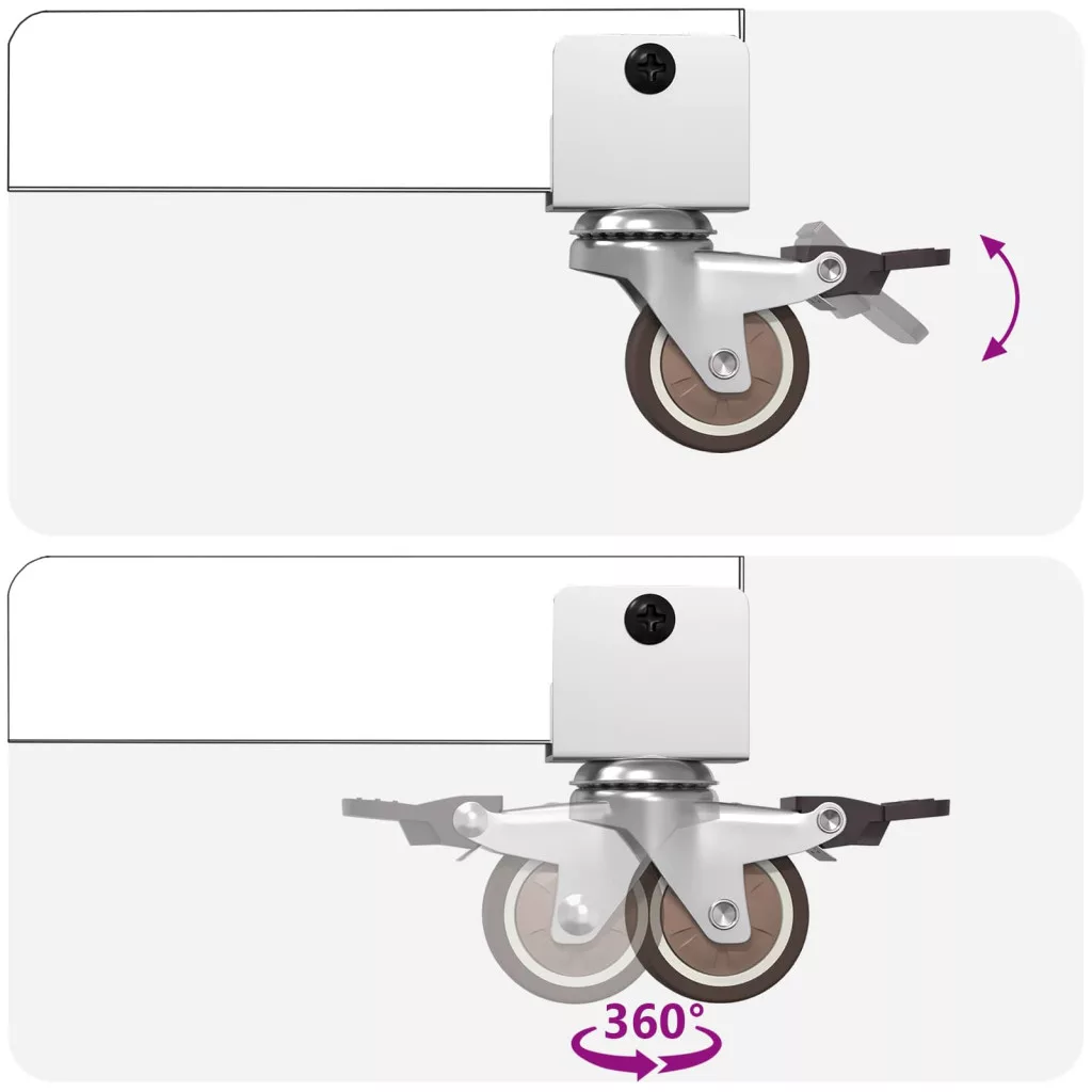 • Zárható gurulós kerekek: Az asztal hat kerekével bármikor könnyedén mozgatható. Minden keréken van egy beépített fék, ami biztosítja a stabilitást étkezés vagy munka közben.