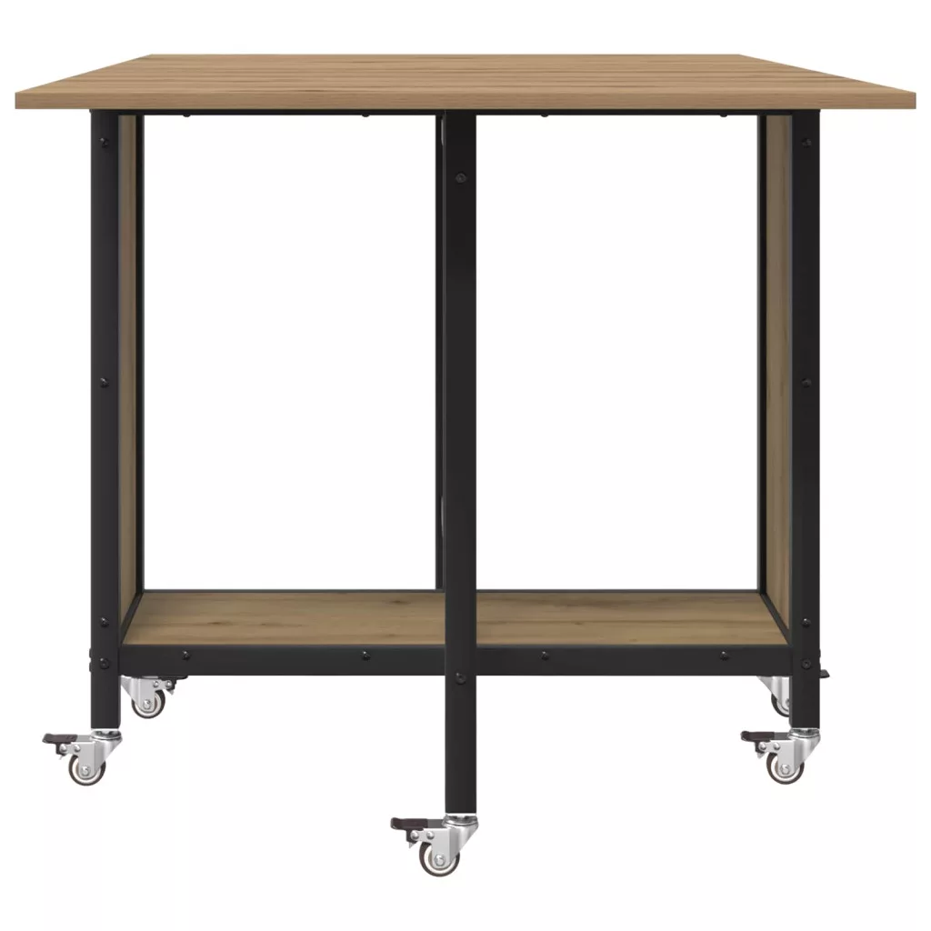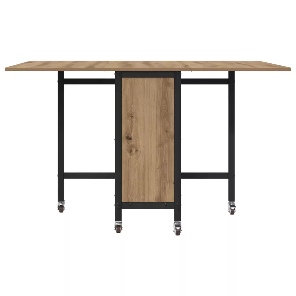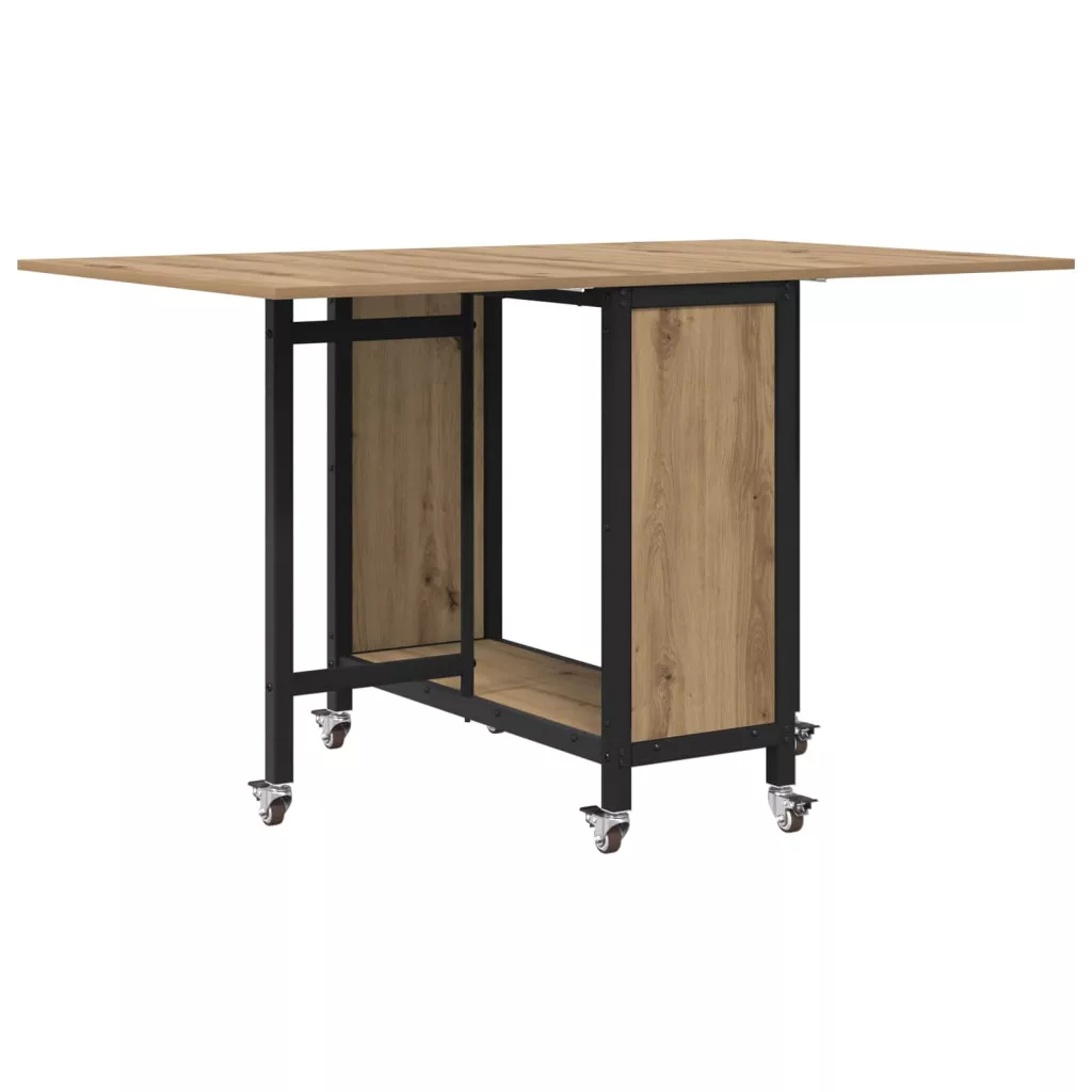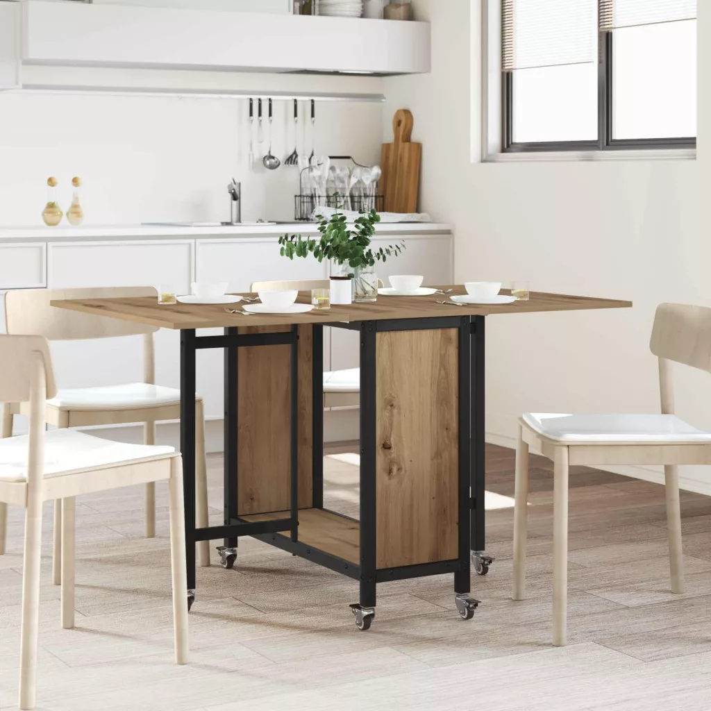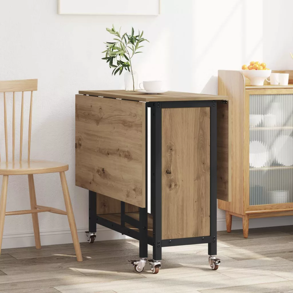 Ez az asztal sima fa felülettel és hatszárnyú, zárható kerekekkel készült. A kétoldalon összecsukható dizájn segít megtakarítani a helyet, míg az alsó polc tárolási lehetőséget kínál. Oszd meg az étkezéseket a családoddal vagy barátaiddal ezzel a klassz fa étkezőasztallal!