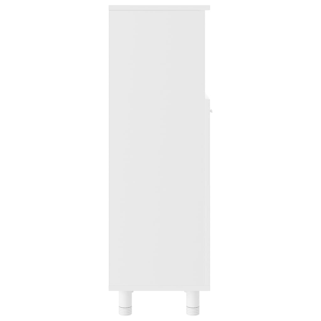 Ez az elegáns szekrény szerelt faból készült, így masszív és stabil. A szekrény 3 rekesszel és 1 ajtóval rendelkezik, amelyek különféle tárolási lehetőségeket és extra helyet biztosítanak a fürdőszobában lévő tárgyak tárolására. Az ajtó fogantyúja könnyebb nyitást és zárást tesz lehetővé. A szekrény nedves ruhával könnyen tisztítható.