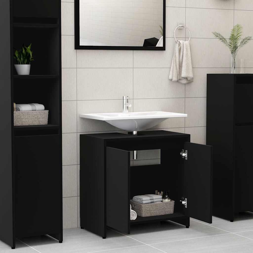 vidaXL fekete szerelt fa fürdőszobaszekrény 60 x 33 x 61 cm