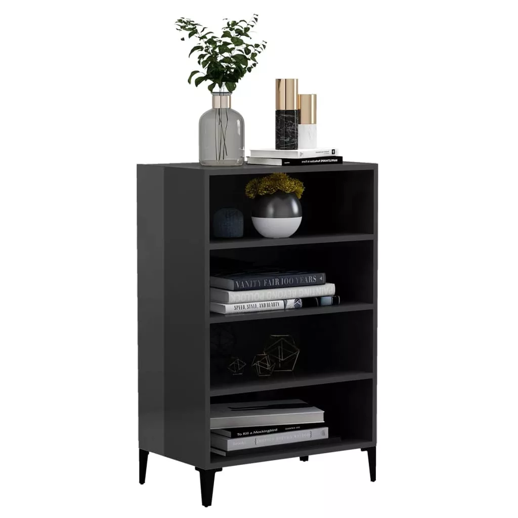A könyvszekrény szerelt fából készült, így masszív, tartós és hosszú élettartamú. A fém lábak tovább növelik stabilitását. A kisszekrény 4 polccal rendelkezik, amelyek bőséges tárolóhelyet biztosítanak. A masszív asztallapra dísztárgyakat, képkereteket vagy cserepes növényeket helyezhet. A tárolószekrény nedves ruhával könnyen tisztítható.