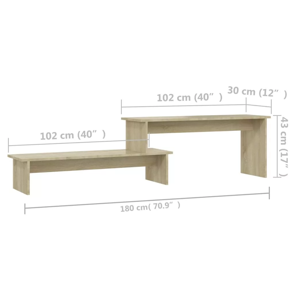 A TV-állvány egy alsó és egy felső polccal rendelkezik, teljes hossza pedig állítható. A felső polcot tetszés szerint különböző helyekre helyezheti. Nedves ruhával könnyen tisztítható.