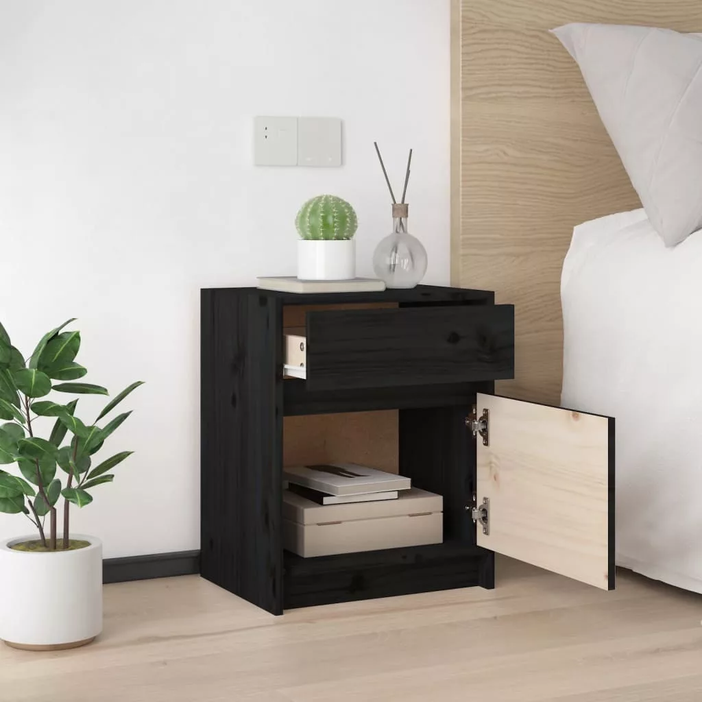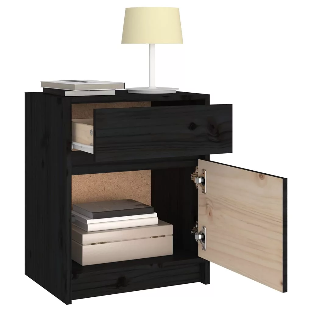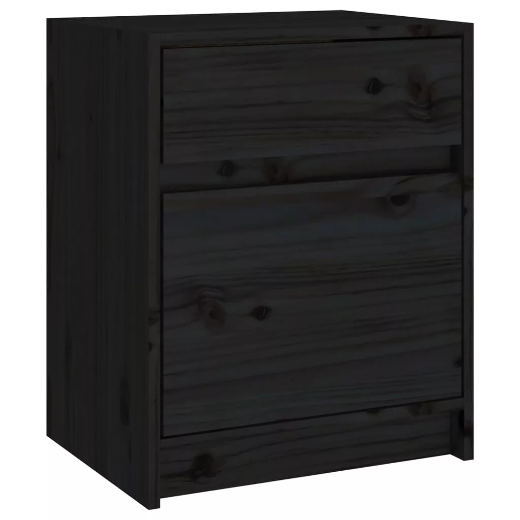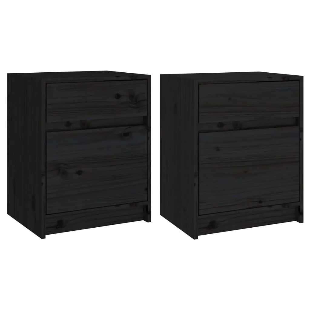 vidaXL 2 darab fekete tömör fenyőfa éjjeliszekrény 40 x 31 x 50 cm
