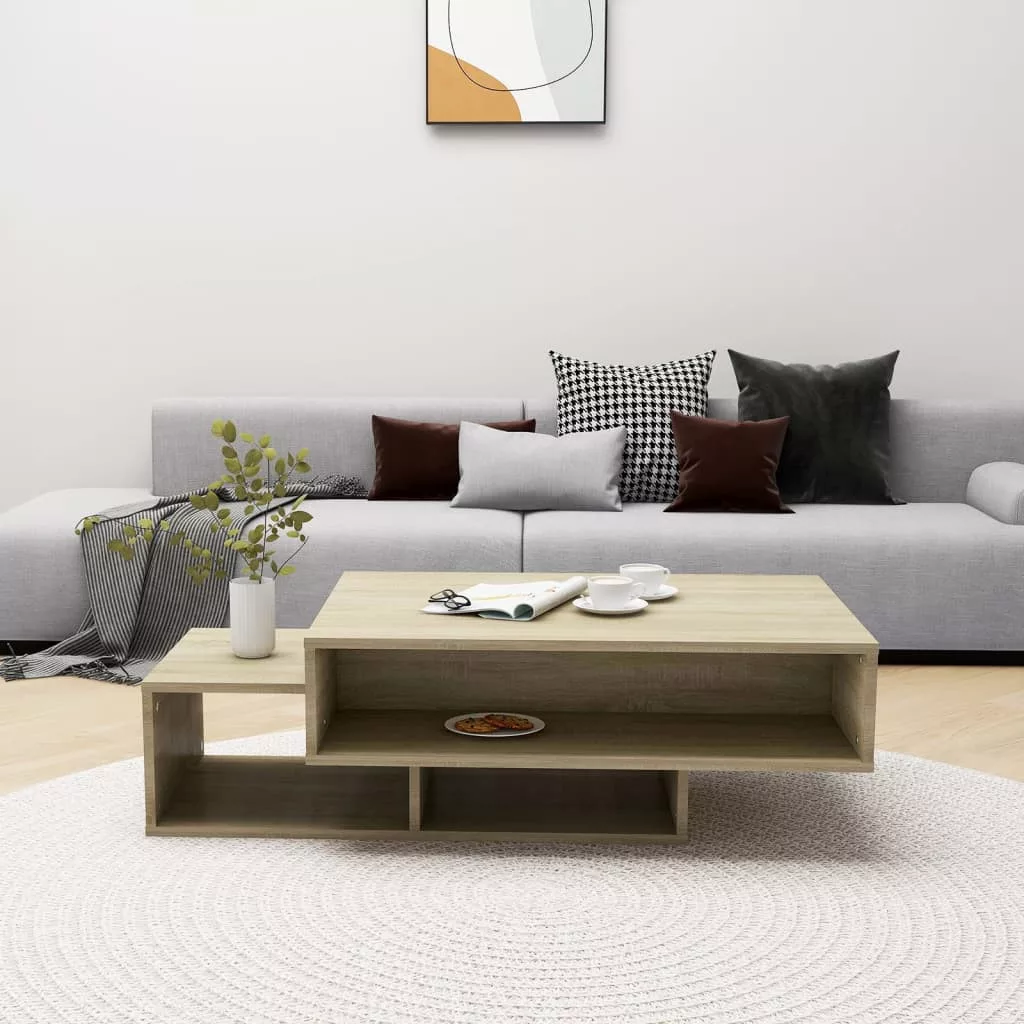 A középső asztal stabil és tartós, hosszú élettartamot biztosítva. Az asztallap alatt 3 rekesz található, amelyek bőséges tárolóhelyet kínálnak könyvek, magazinok, CD-k stb. számára. A masszív asztallap ideális kedvenc dísztárgyainak elhelyezésére. Emellett a kanapéasztal könnyen karbantartható és nedves ruhával tisztítható.