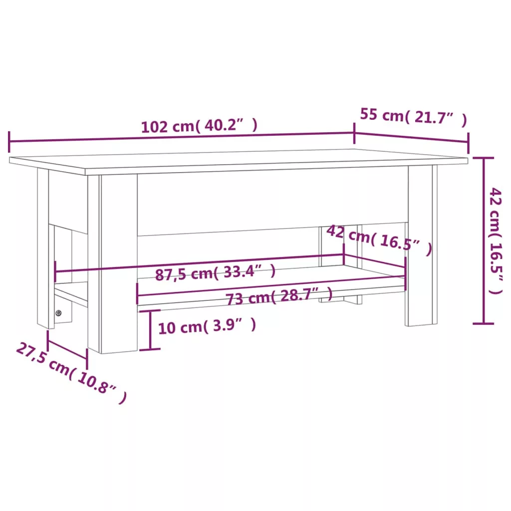 Ez a modern dohányzóasztal egyszerű, mégis stílusos kialakítású, és bármely enteriőrhöz illik.