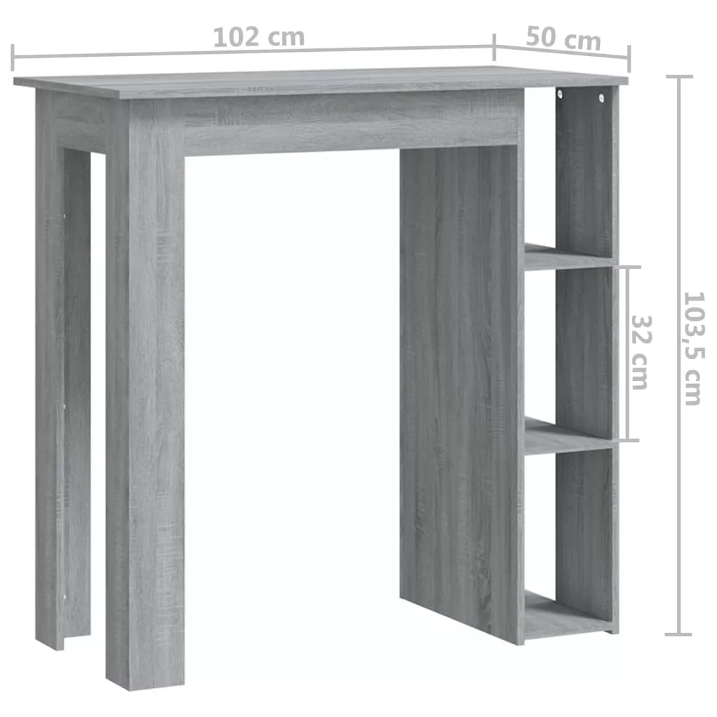 vidaXL szürke sonoma szerelt fa bárasztal polccal 102 x 50 x 103,5 cm