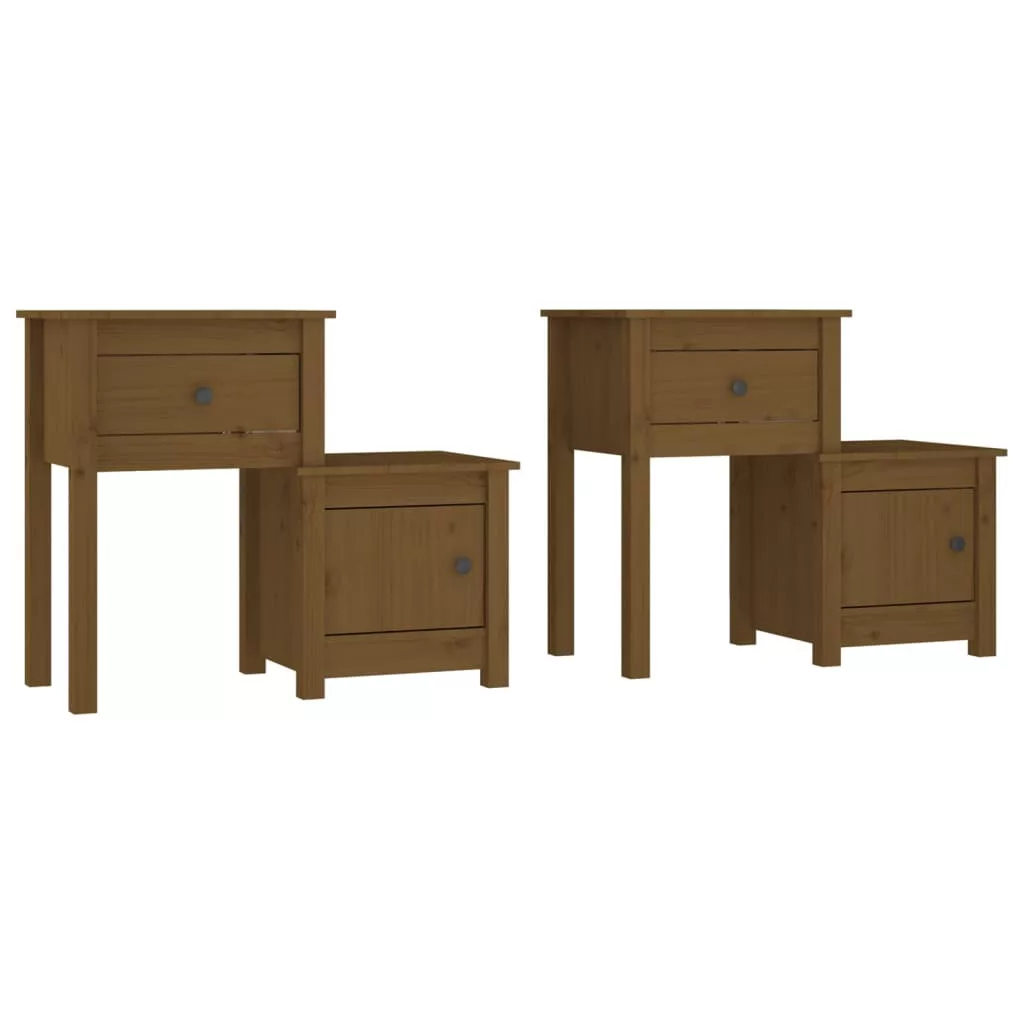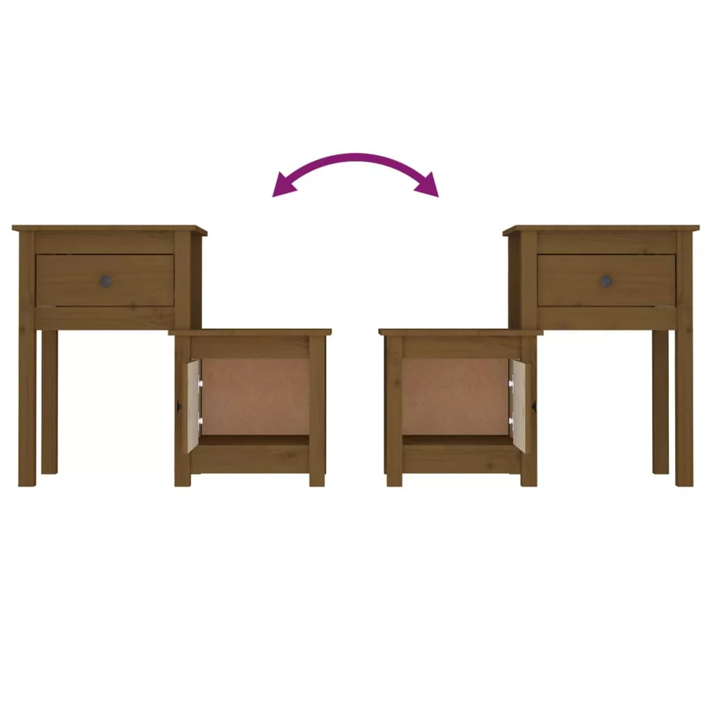 vidaXL 2 db mézbarna tömör fenyőfa éjjeliszekrény 79,5 x 38 x 65,5 cm