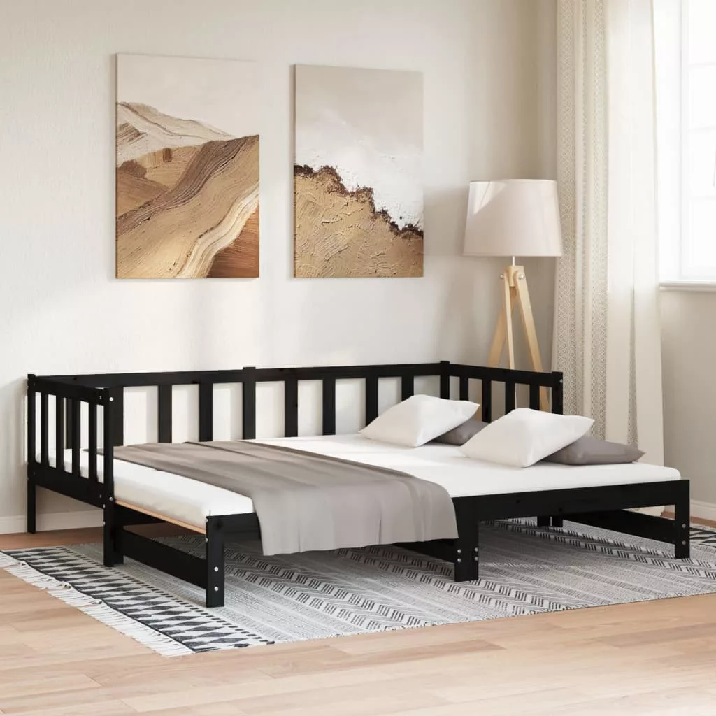 Ez a sokoldalú fa kanapéágy használható ágyként a hálószobában, és kanapéként is tökéletes a nappaliban.