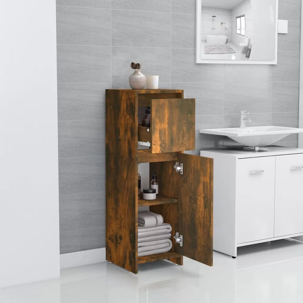 vidaXL füstös tölgy színű szerelt fa fürdőszobaszekrény 30x30x95 cm