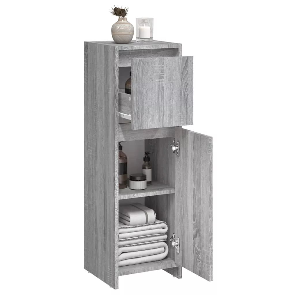 - Bőséges tárolóhely: A fürdőszobai tárolószekrényben egy fiók és két rekesz található az ajtó mögött. A tárolóhely megkönnyíti holmija rendezett tárolását.