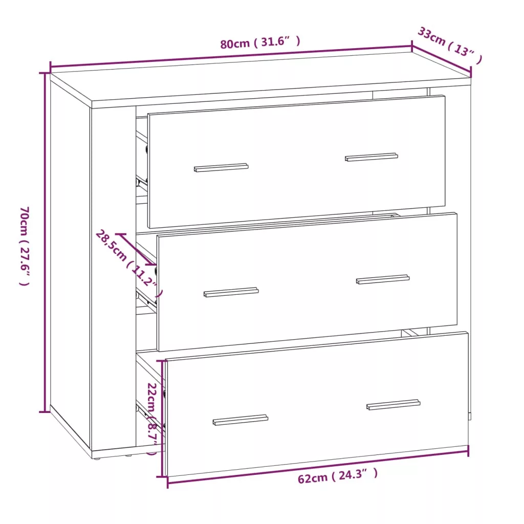 - Elegendő tárhely: A 3 fiókkal felszerelt tálalószekrény bőséges tárolóhelyet kínál alapvető kellékei kézközelben történő rendezett tárolásához.