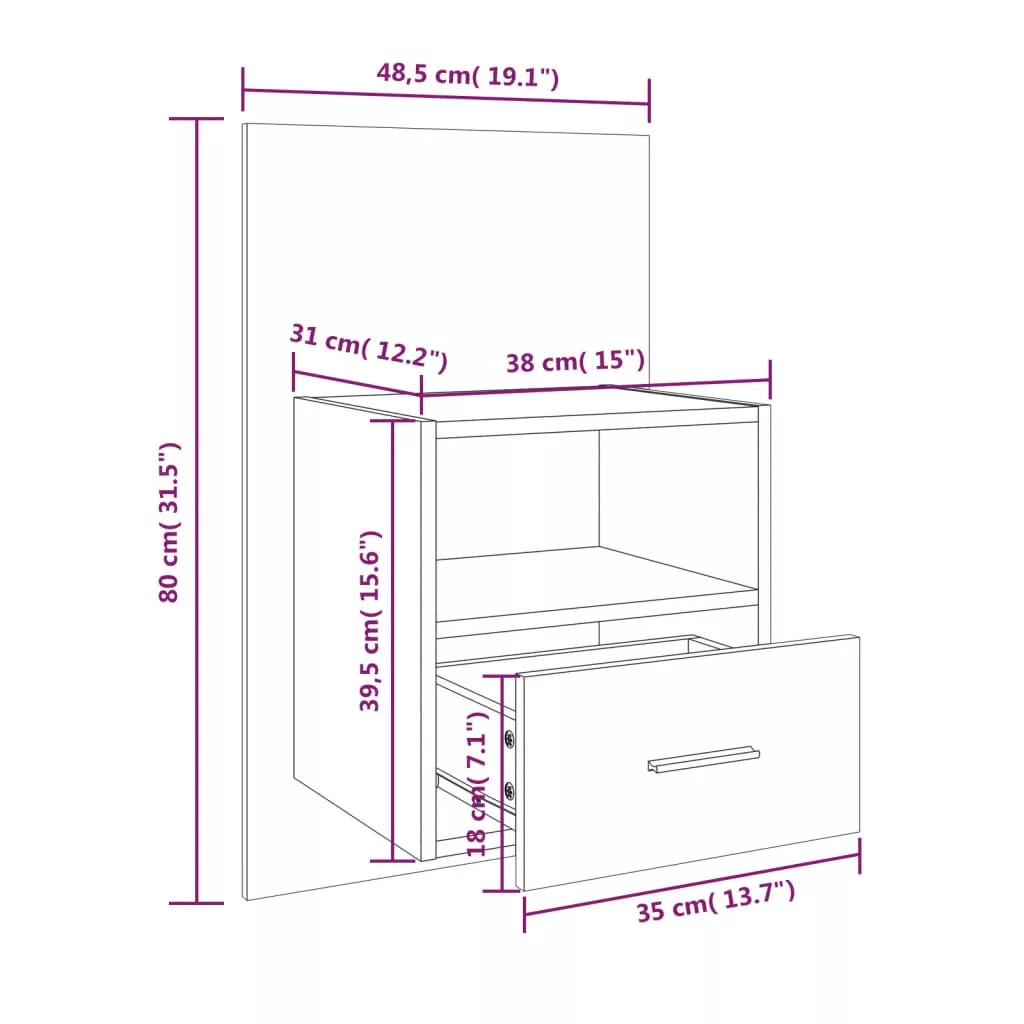 - Könnyen tisztítható anyag: A szerelt fa kivételes minőségű, sima felületű, szilárd, stabil és ellenáll a nedvességnek. A szerelt fából készült fali éjjeliszekrény könnyen tisztítható.