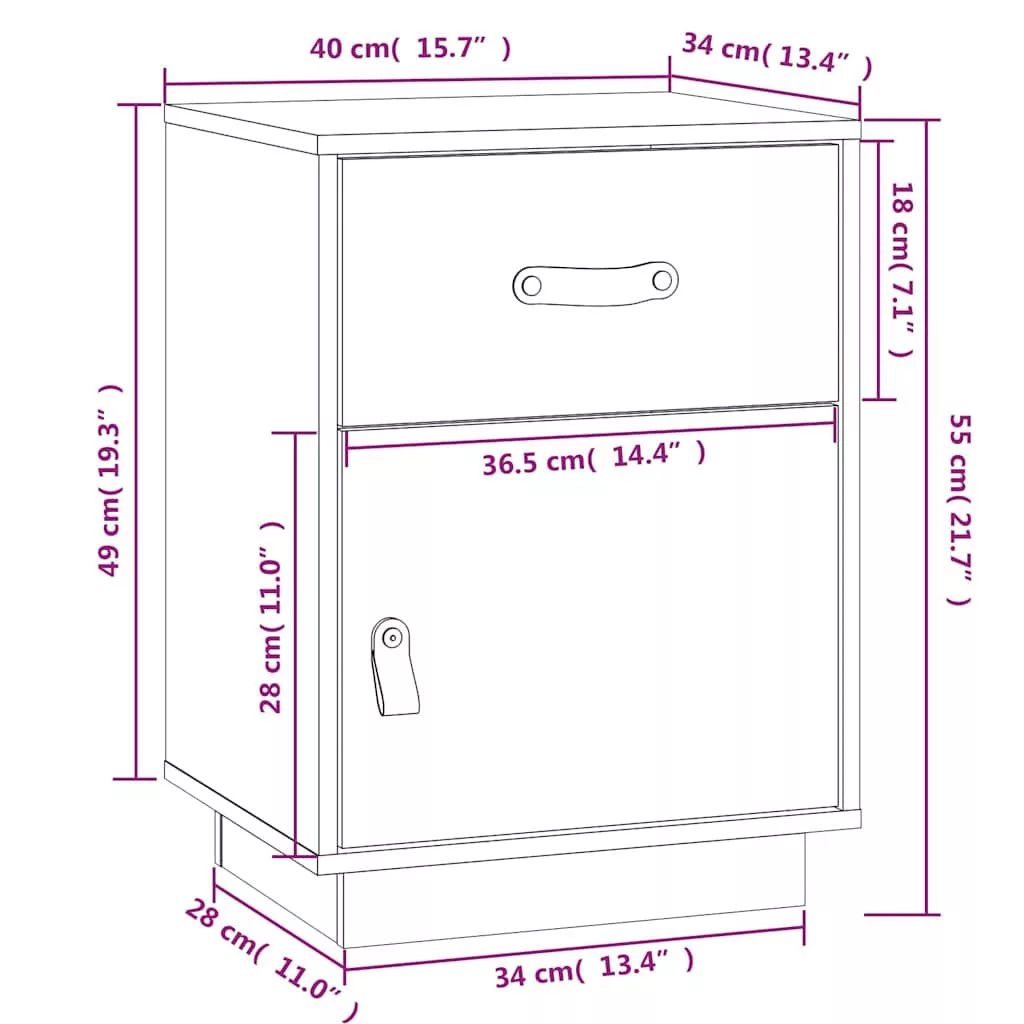 vidaXL fehér tömör fenyőfa éjjeliszekrény 40 x 34 x 55 cm