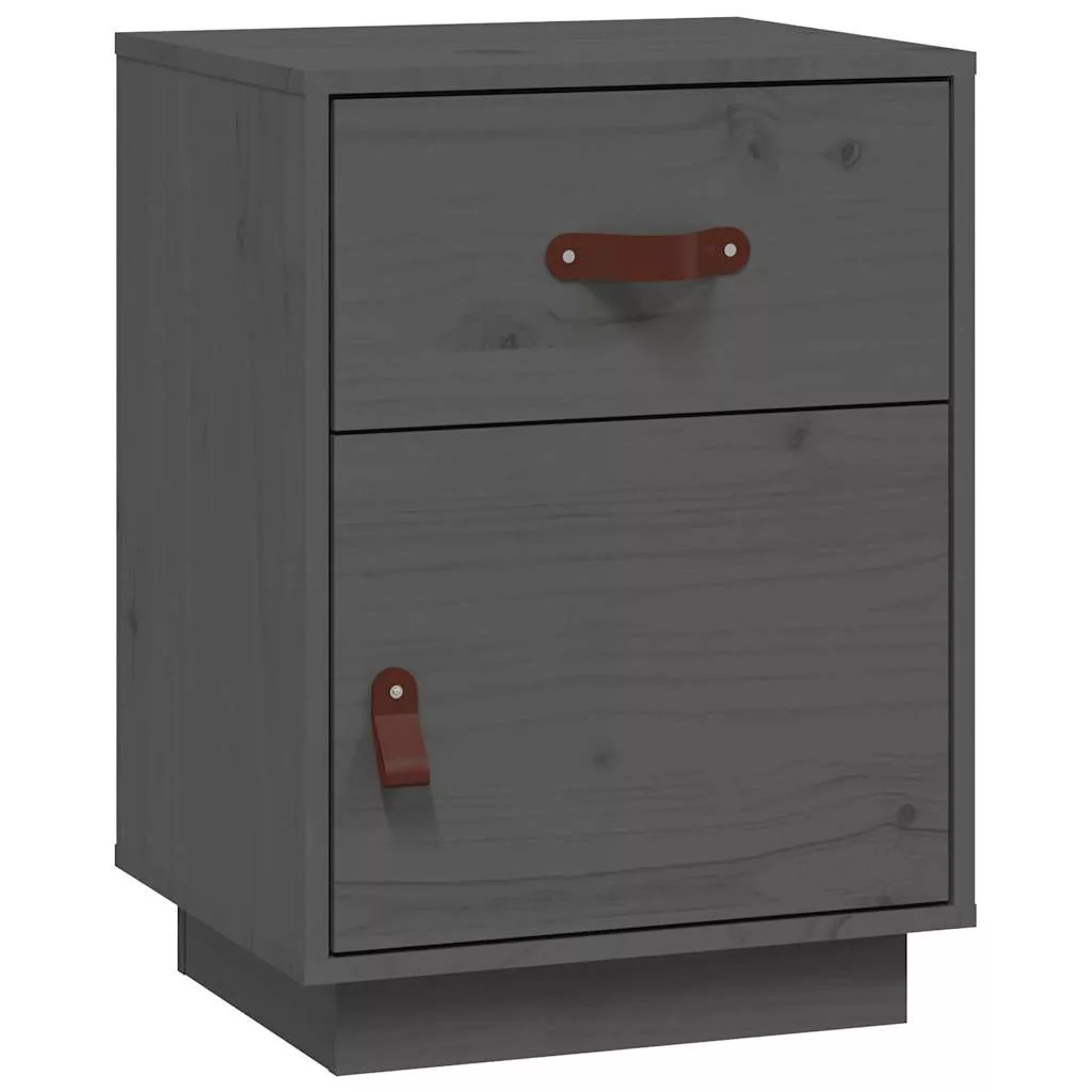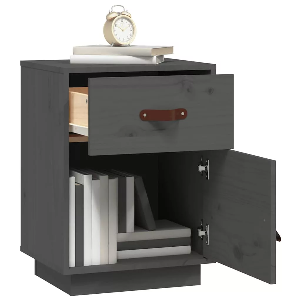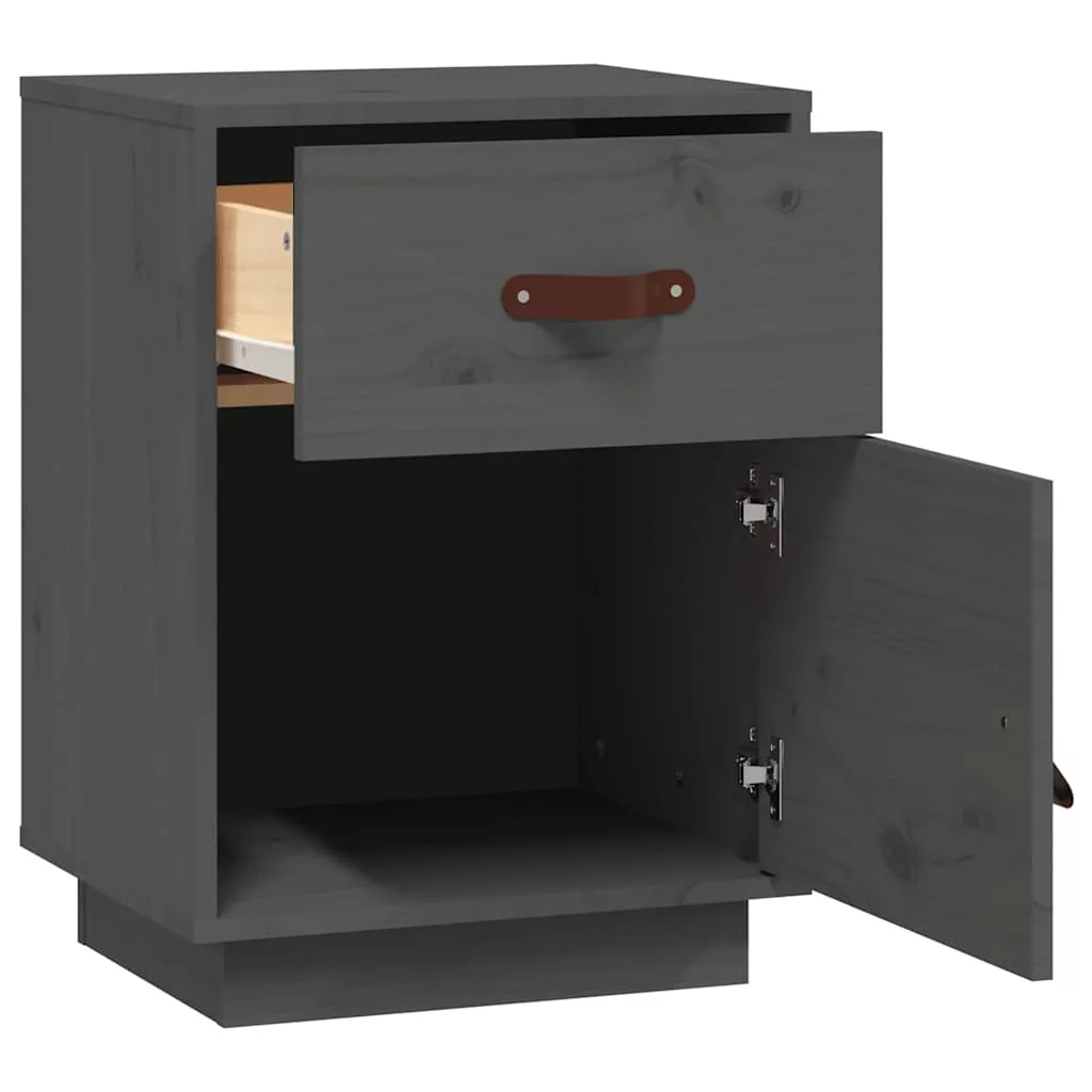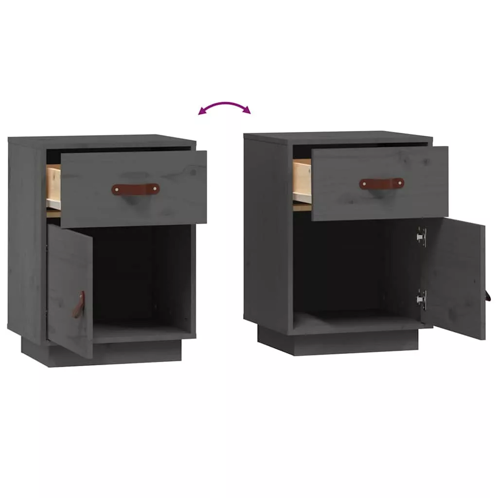 vidaXL 2 darab szürke tömör fenyőfa éjjeliszekrény 40 x 34 x 55 cm