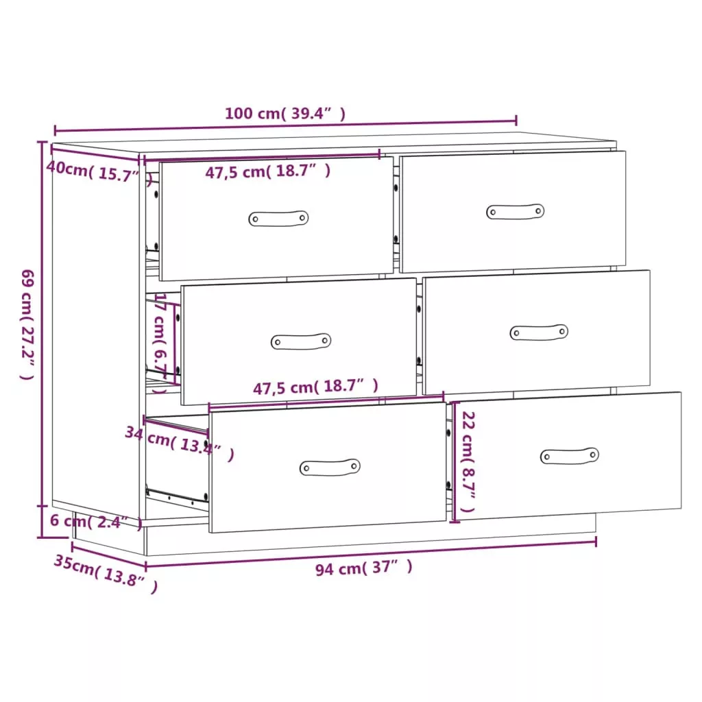 - Bőséges tárolóhely: A tálalószekrény 6 fiókkal rendelkezik, így elegendő tárolóhelyet kínál holmijai rendezett és kézközelben történő tárolásához.