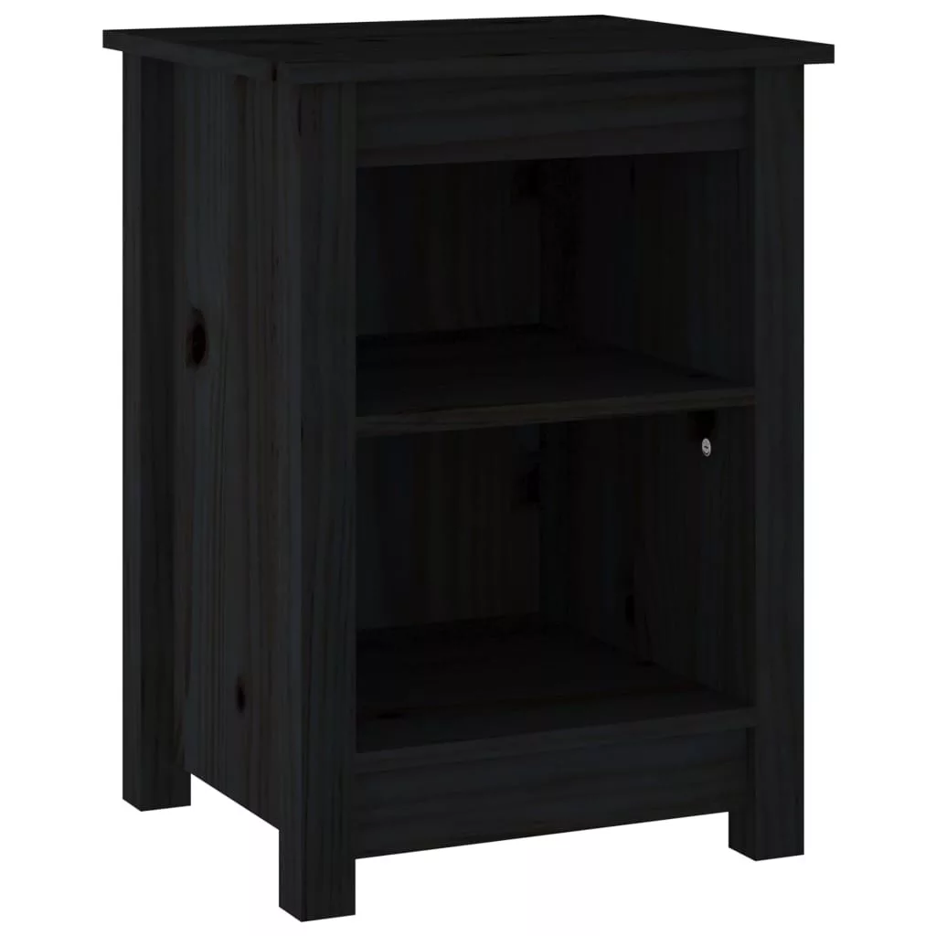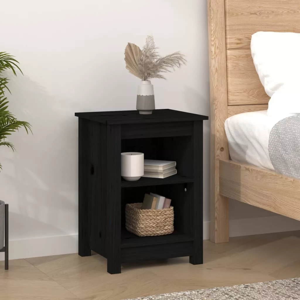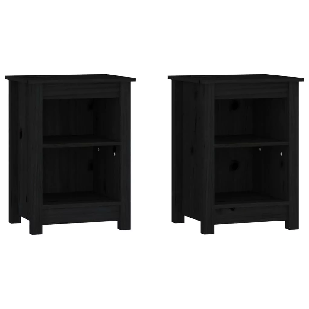 vidaXL 2 db fekete tömör fenyőfa éjjeliszekrény 40 x 35 x 55 cm