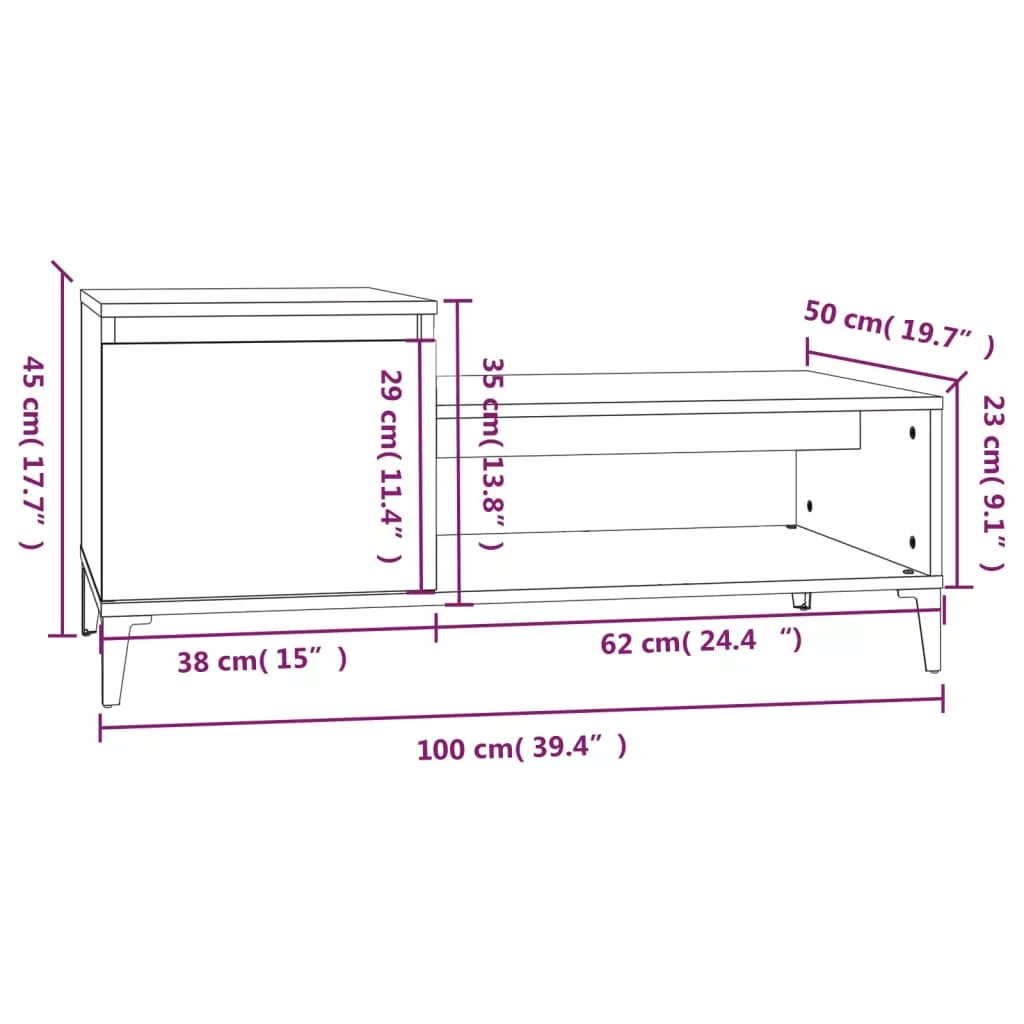 - Bőséges tárolóhely: Ez a kanapéasztal 1 rekesszel és 1 polccal rendelkezik, így bőséges tárolóhelyet kínál mindennapi kellékei rendezett tárolásához.