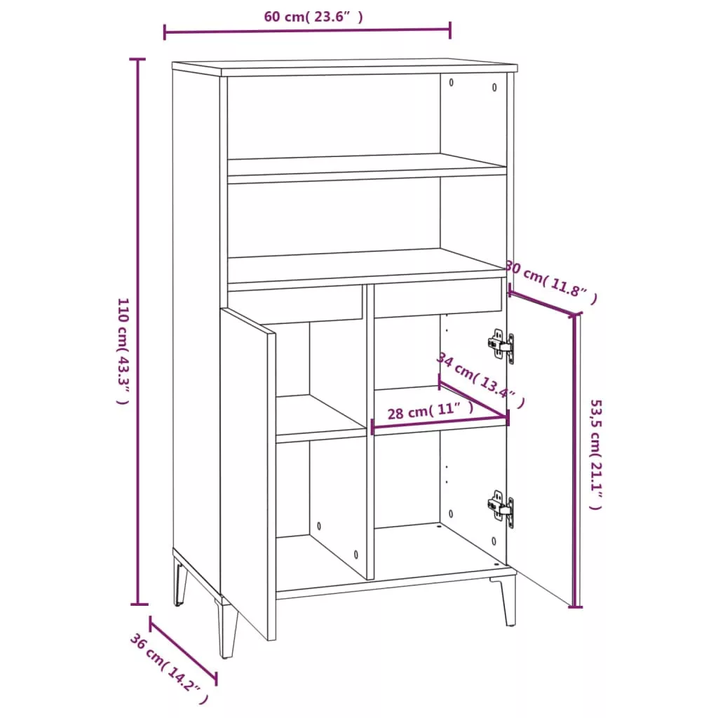 - Stabil fémlábak: A tálalószekrény fémlábai ipari és nyugodt stílust visznek belső terébe, miközben stabilitást is biztosítanak.
