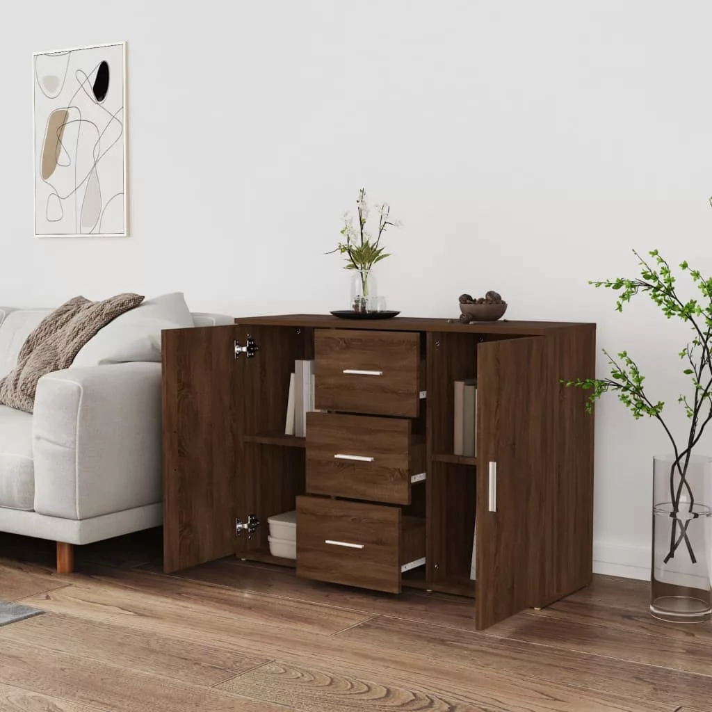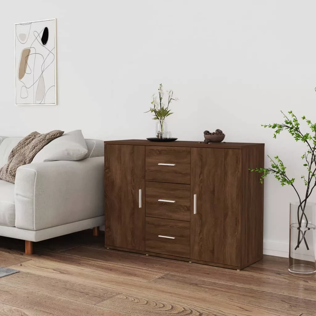 - Bőséges tárolóhely: A 2 ajtóval és 3 fiókkal ellátott tálalószekrény bőséges tárolóhelyet nyújt könyvek, multimédiás eszközök és egyéb tárgyak tárolásához.