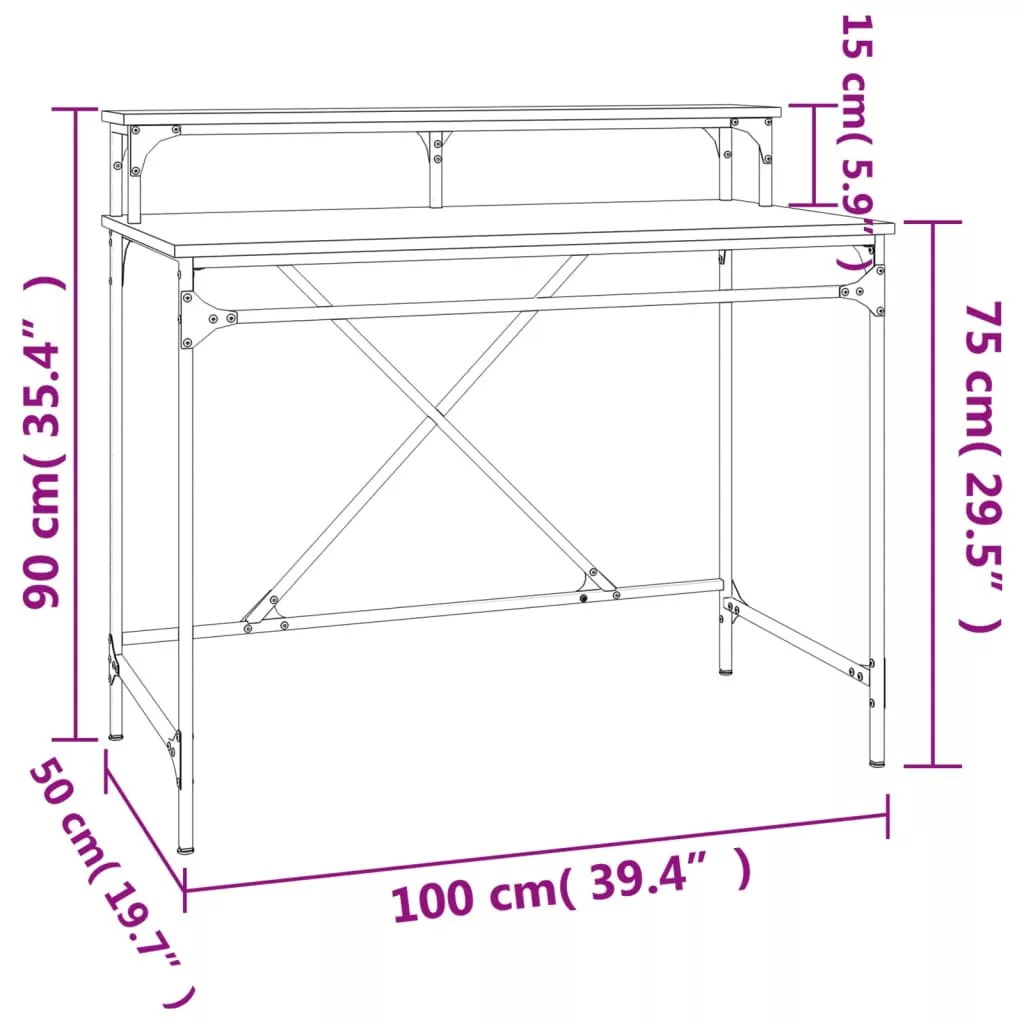 vidaXL szürke sonoma színű szerelt fa íróasztal 100 x 50 x 90 cm