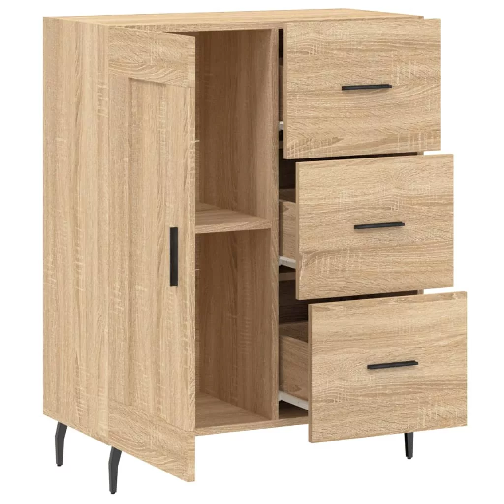 - Bőséges tárolóhely: A tálalószekrényben 2 rekesz és 3 fiók található, ami bőséges tárhelyet biztosít alapvető holmijai elérhető közelségben történő, rendezett tárolásához.