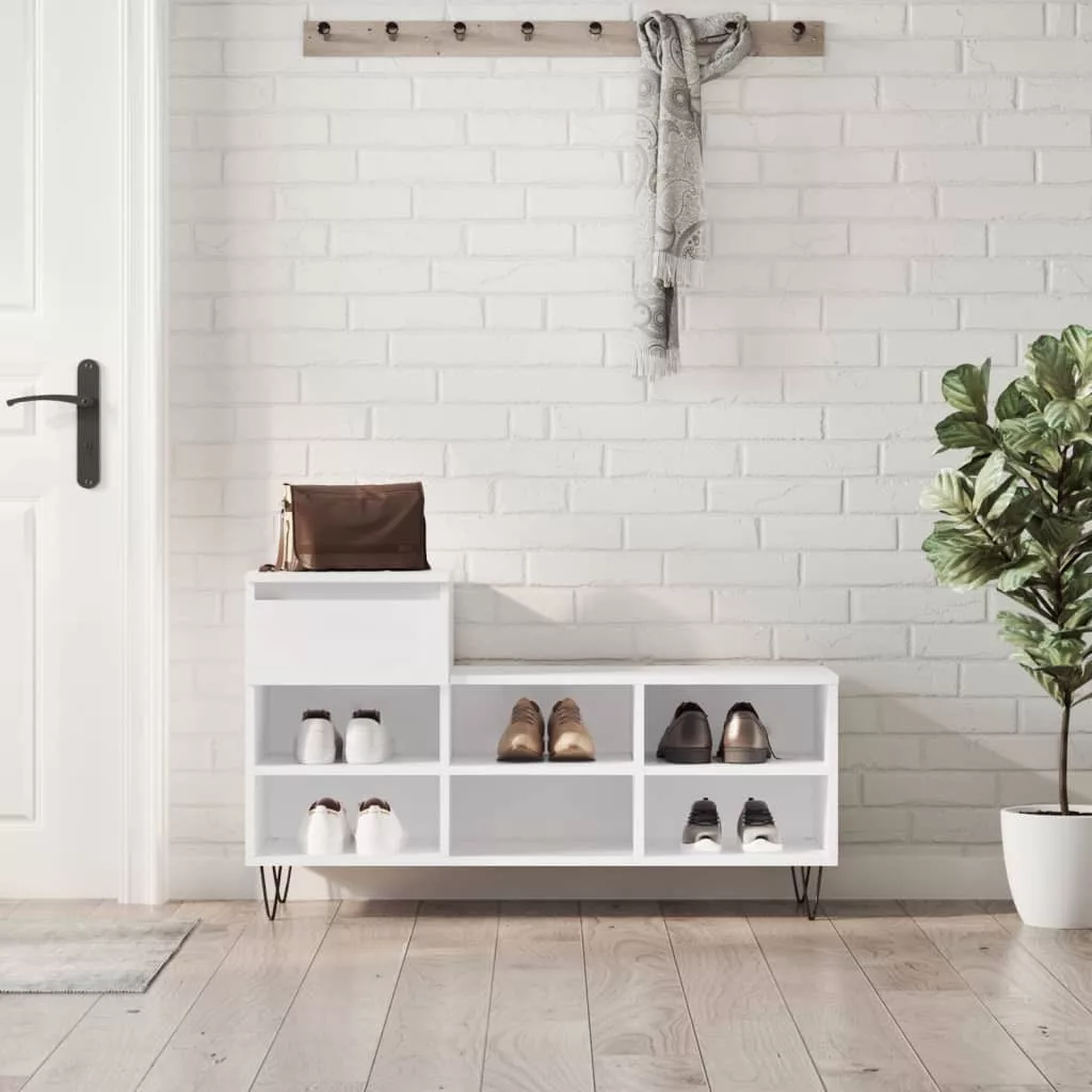 vidaXL magasfényű fehér szerelt fa cipősszekrény 102x36x60 cm
