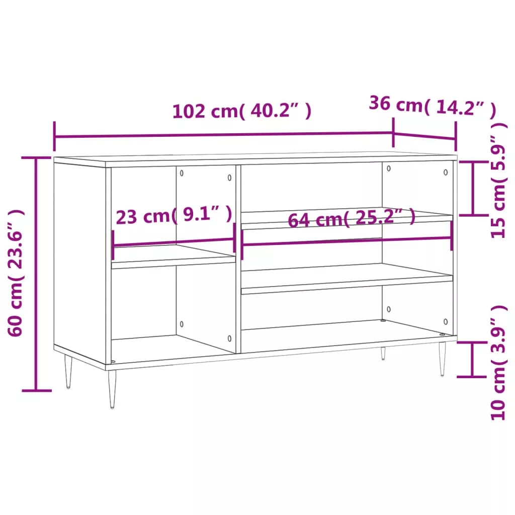 vidaXL szürke sonoma színű szerelt fa cipősszekrény 102x36x60 cm