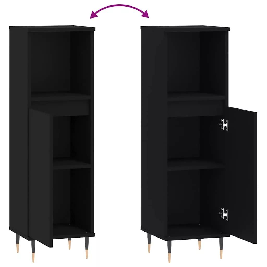 vidaXL fekete szerelt fa fürdőszobaszekrény 30 x 30 x 100 cm