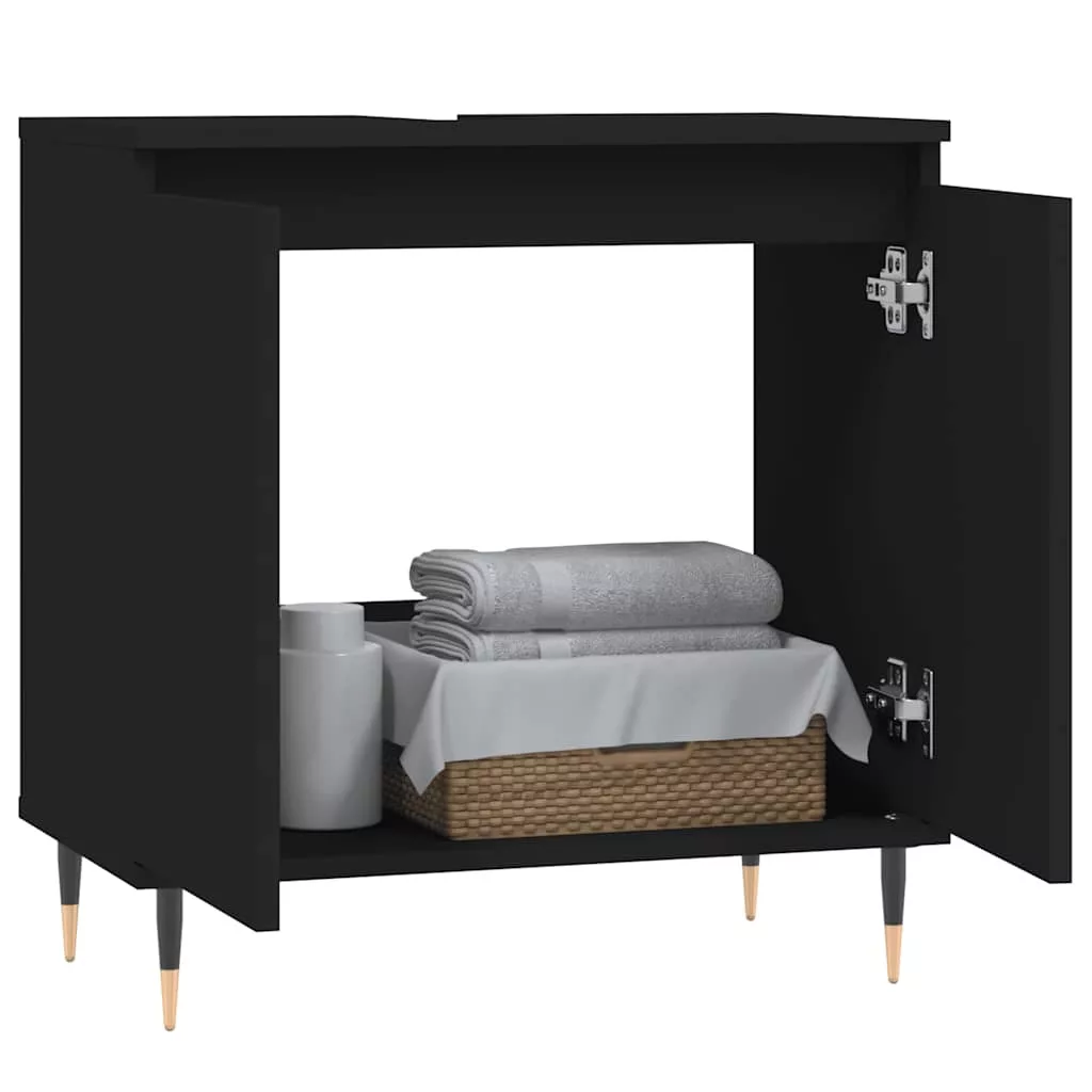 vidaXL fekete szerelt fa mosdószekrény 58x33x60 cm