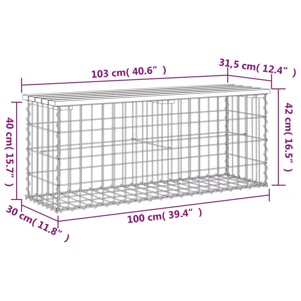 - Masszív és stabil alap: Ez a kültéri pad horganyzott acél gabionkosaras alappal rendelkezik, amelyet úgy terveztek, hogy a szépség fokozása érdekében kövekkel és kavicsokkal töltsék fel. A rács az extra stabilitás érdekében minden metszéspontjánál kereszt- és hosszanti irányú hegesztésekkel van megerősítve.