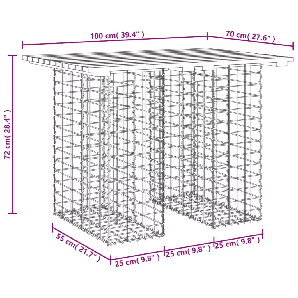 - Masszív és stabil alap: Ez a kültéri asztal horganyzott acél gabionkosárral rendelkezik, amelyet úgy terveztek, hogy kövekkel és kaviccsal töltsenek meg a további szépség érdekében. A gabionkosár hálós rácsát minden metszéspontban keresztirányú és hosszanti huzalokkal hegesztették a fokozott stabilitás érdekében.