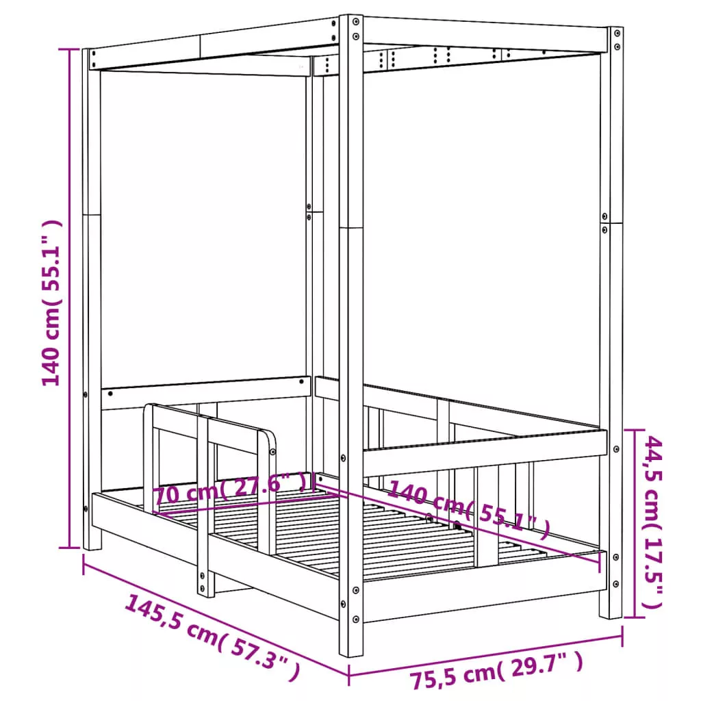 - Baldahinos ágy kialakítása: Ez a kisgyermekágy okosan megtervezett, baldachinos ágykerettel, amelyre ágyfüggönyöket akaszthat, hogy magánéletet teremtsen gyermeke számára.