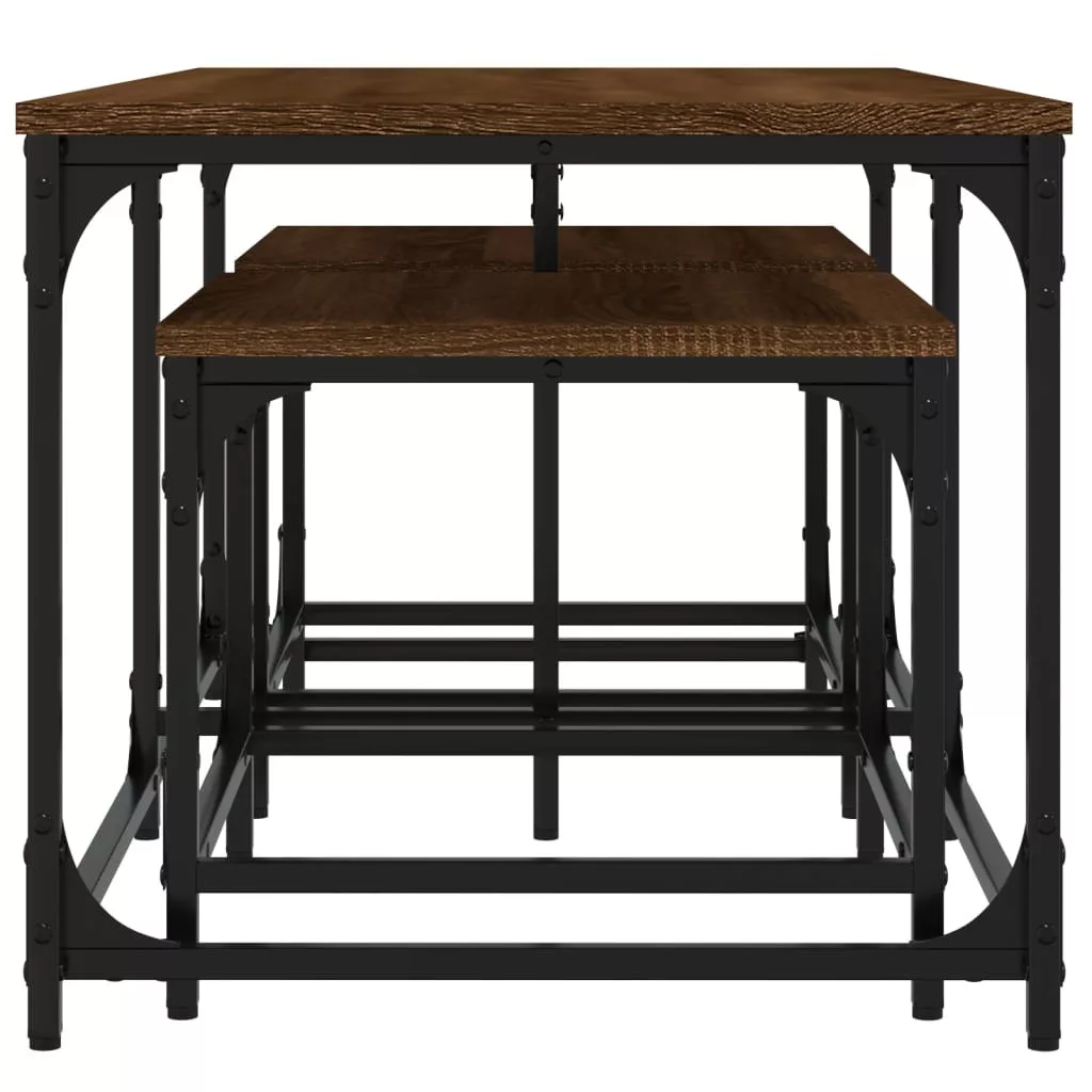 Ez a 3 egymásba tolható dohányzóasztal tökéletesek kis lakásokba vagy bármilyen korlátozott helyen. Ipari stílusú kialakításának köszönhetően ez a dohányzóasztal szett elegáns kiegészítője lesz nappalijának, hálószobájának vagy irodájának.