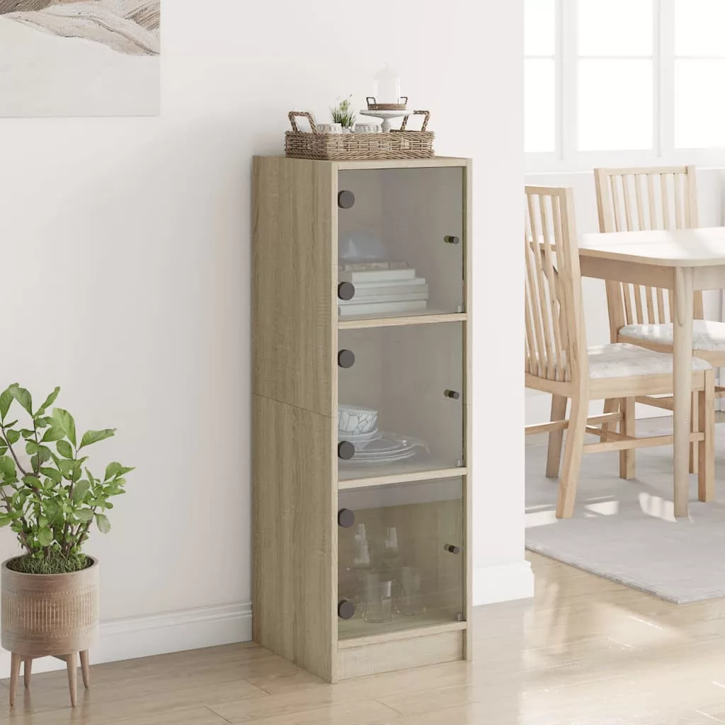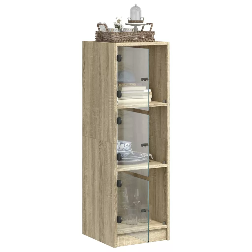 vidaXL sonoma tölgy színű magasszekrény üvegajtókkal 35 x 37 x 109 cm