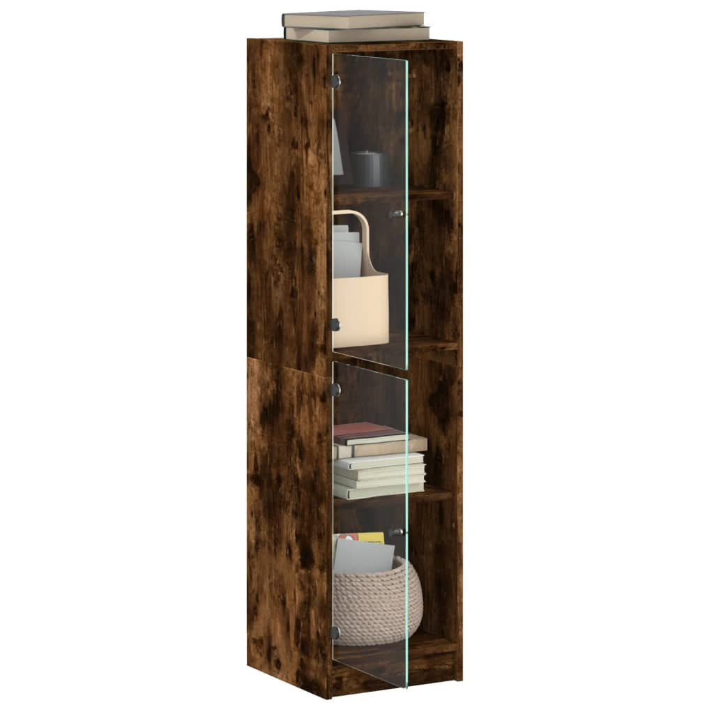 vidaXL füstös tölgy színű magasszekrény üvegajtókkal 35 x 37 x 142 cm
