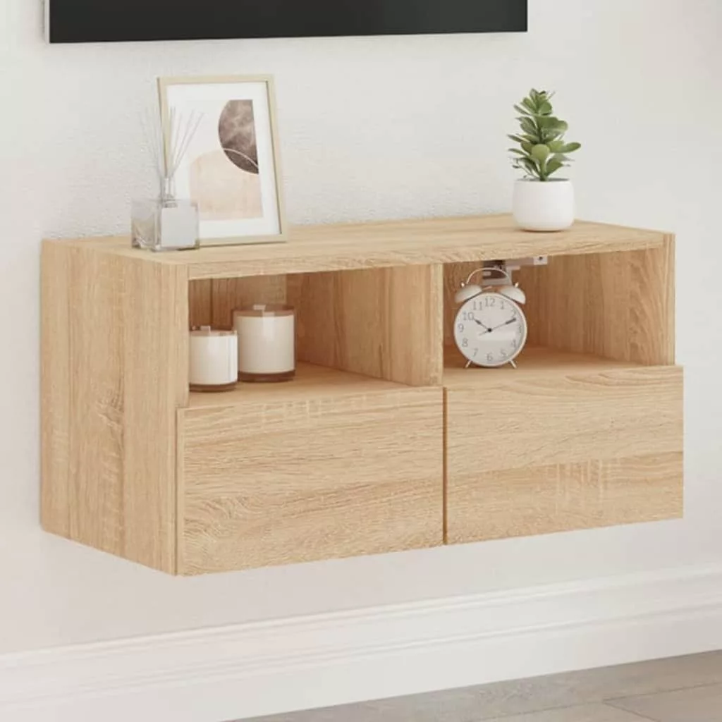 - Bőséges tárolóhely: A lebegő TV-egység 2 polccal és 2 rekesszel rendelkezik az ajtaja mögött, hogy az apróbb tárgyakat, például könyveket, DVD-ket és folyóiratokat rendezetten és elérhető helyen tarthassa.