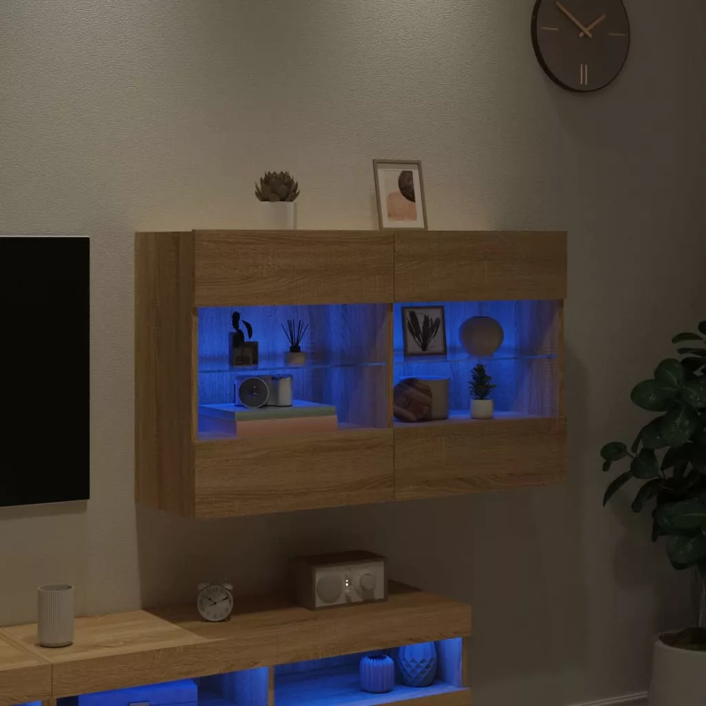 - RGB LED-világítás: A falra szerelhető média-szekrény élénk RGB LED-világítással lett felszerelve. A sokféle testre szabható menü segítségével egyszerűen megváltoztathatja a világítás színét, sőt, automatikus váltakozást is beállíthat. Ezek a LED-lámpák nemcsak a lebegő TV-egység modern megjelenését, de divatosságát is növelik.