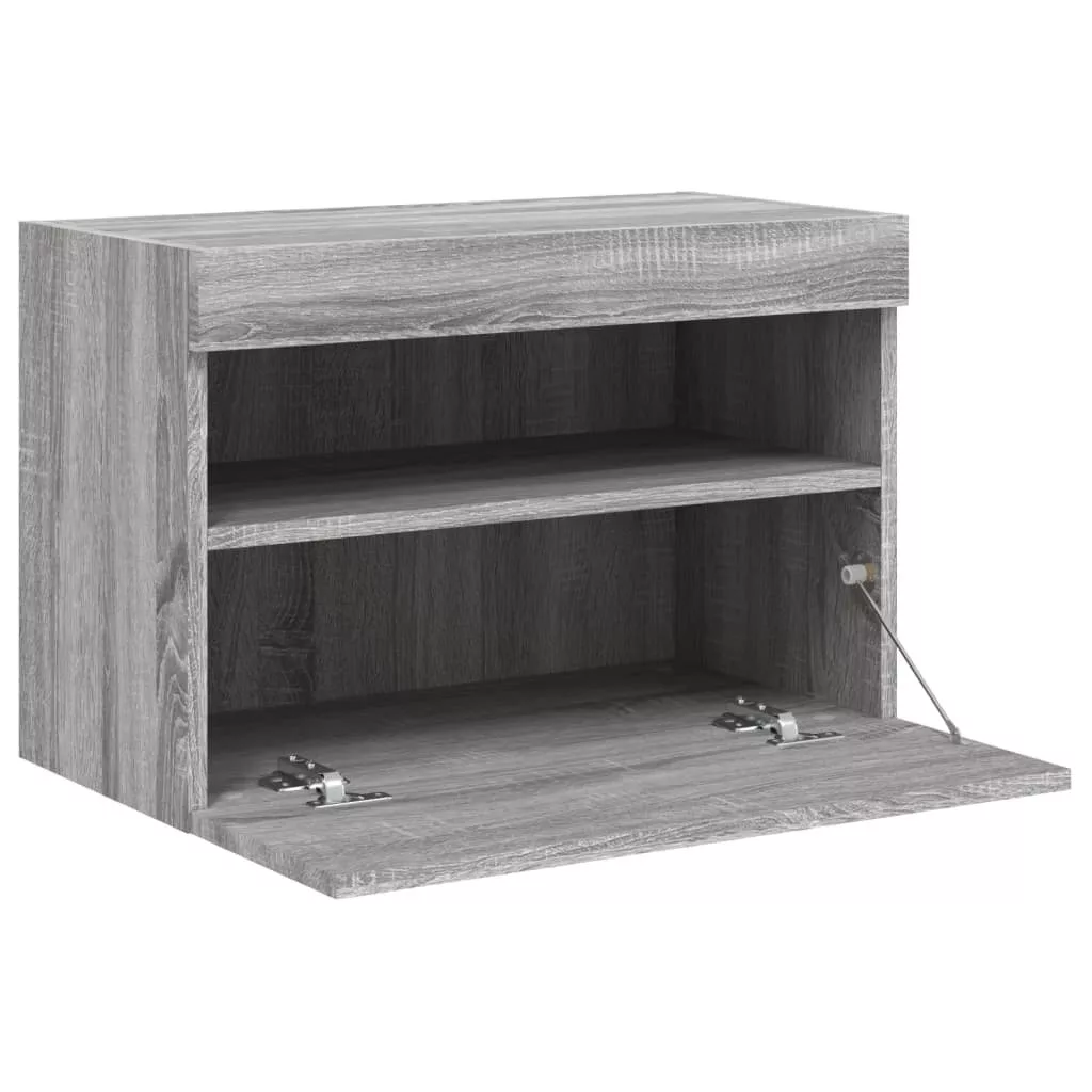 - RGB LED-világítás: A falra szerelhető média-szekrény élénk RGB LED-világítással lett felszerelve. A sokféle testre szabható menü segítségével egyszerűen megváltoztathatja a világítás színét, sőt, automatikus váltakozást is beállíthat. Ezek a LED-lámpák nemcsak a lebegő TV-egység modern megjelenését, de divatosságát is növelik.